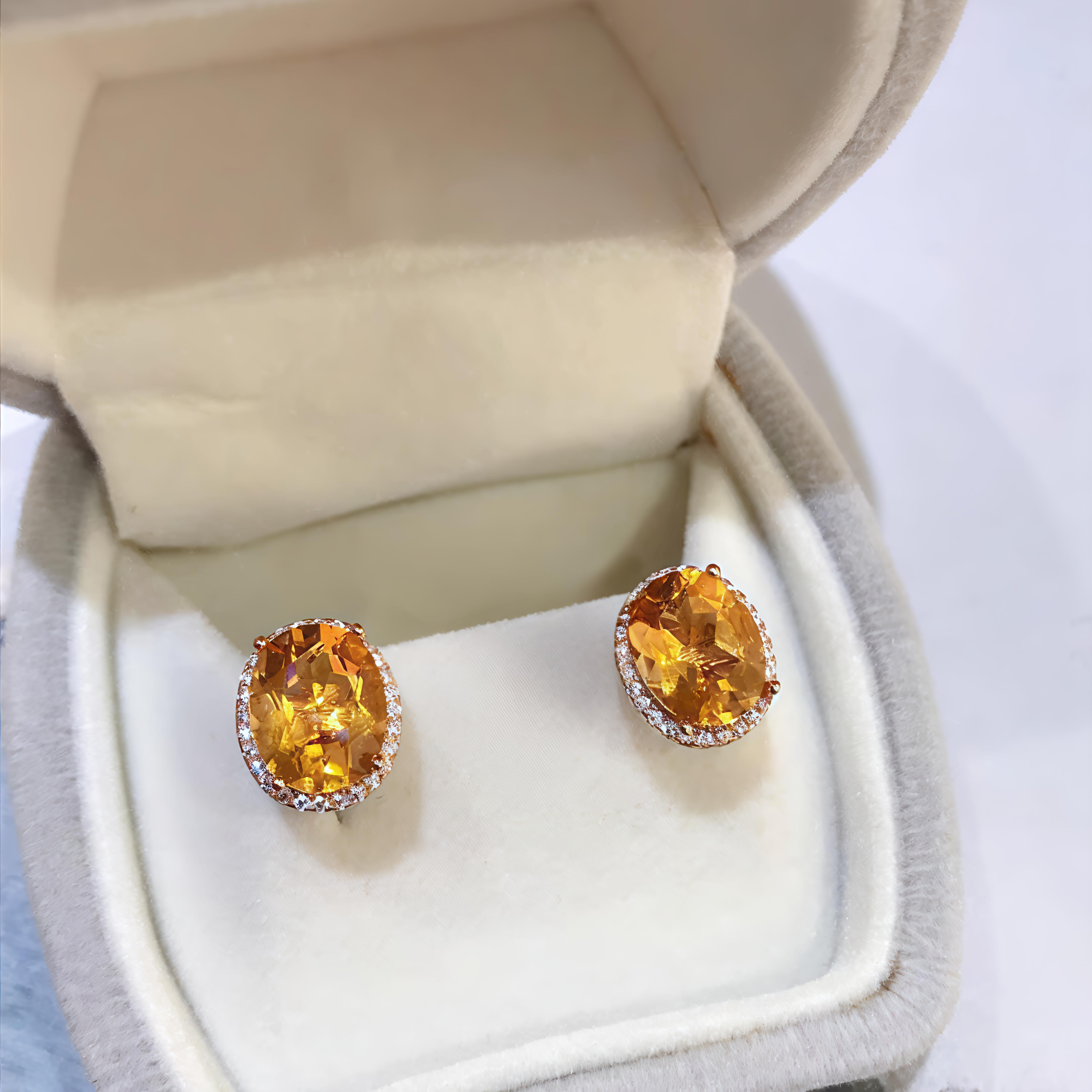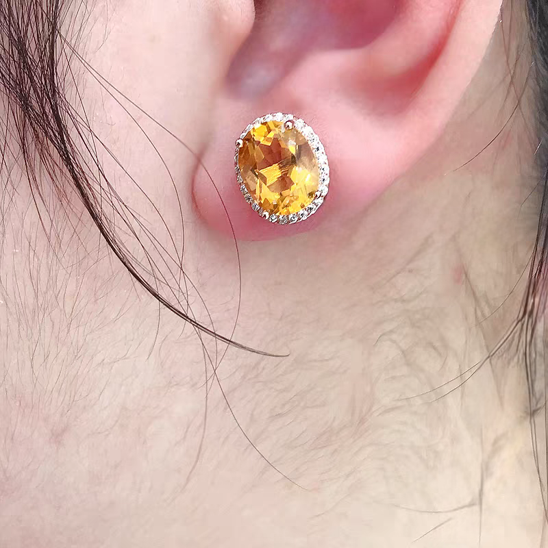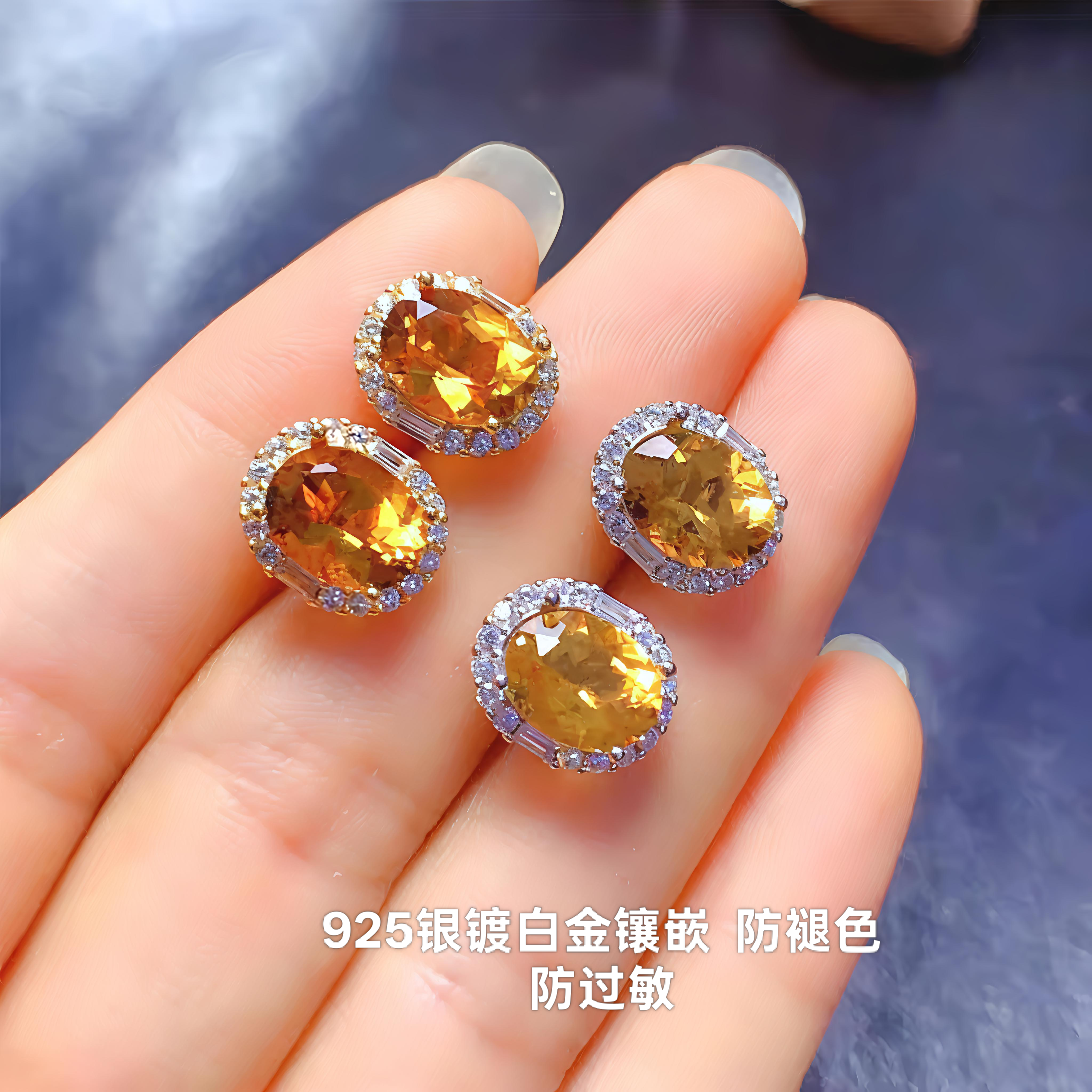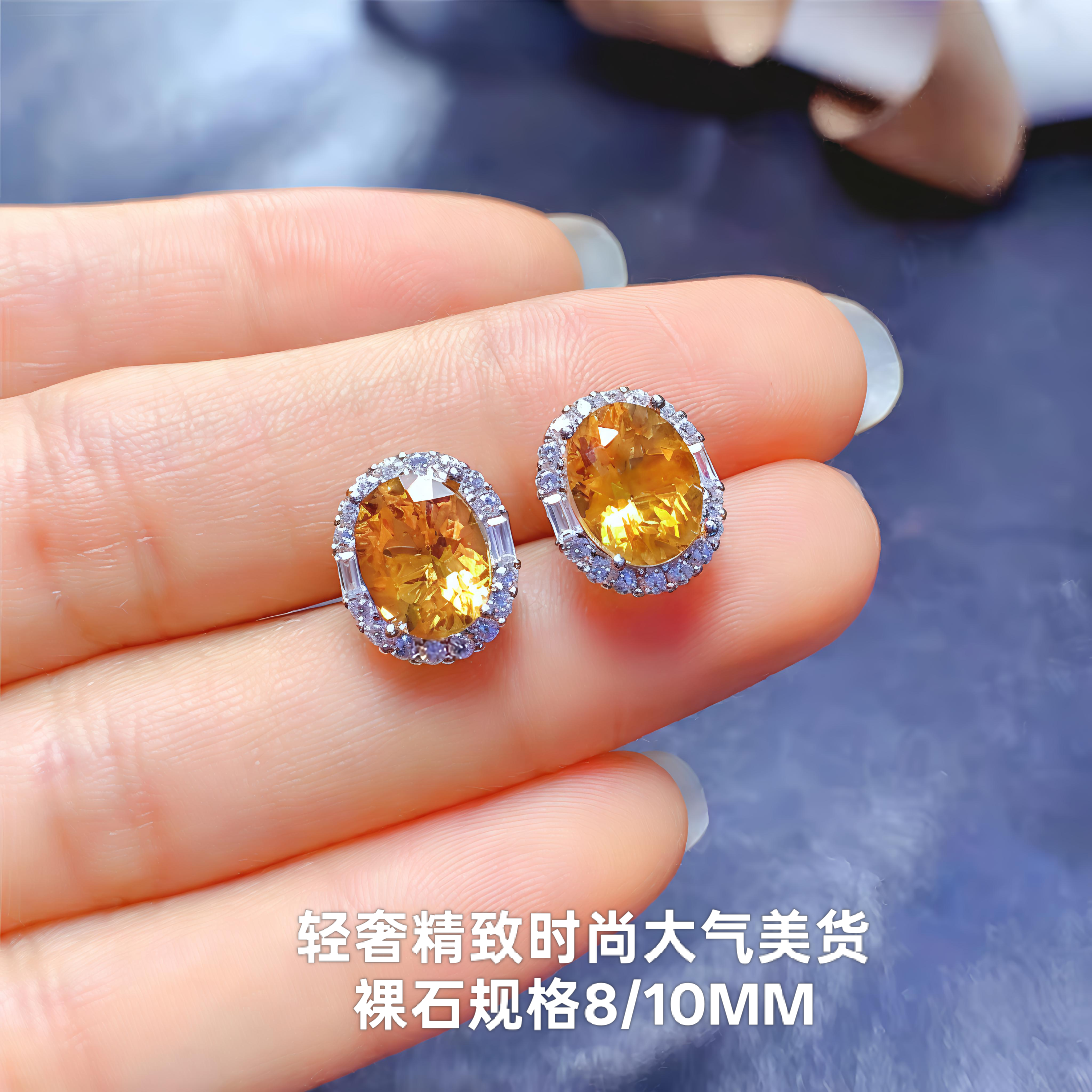 新品轻奢时尚天然黄水晶耳钉女款925银镀18K金耳环网红小红书爆款