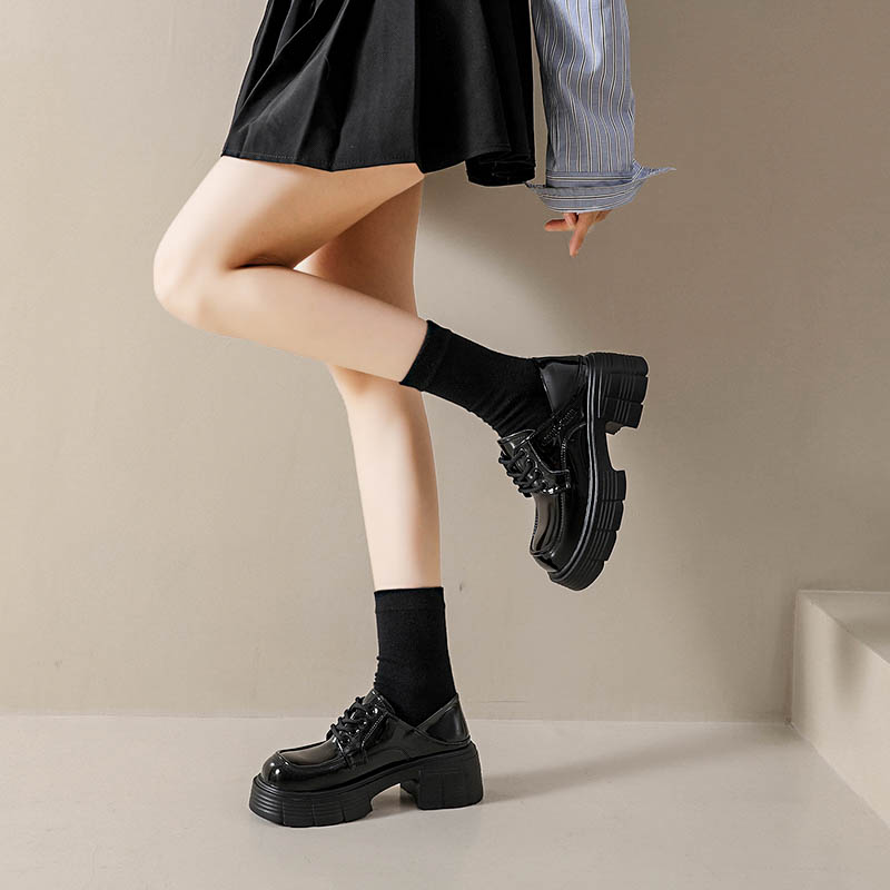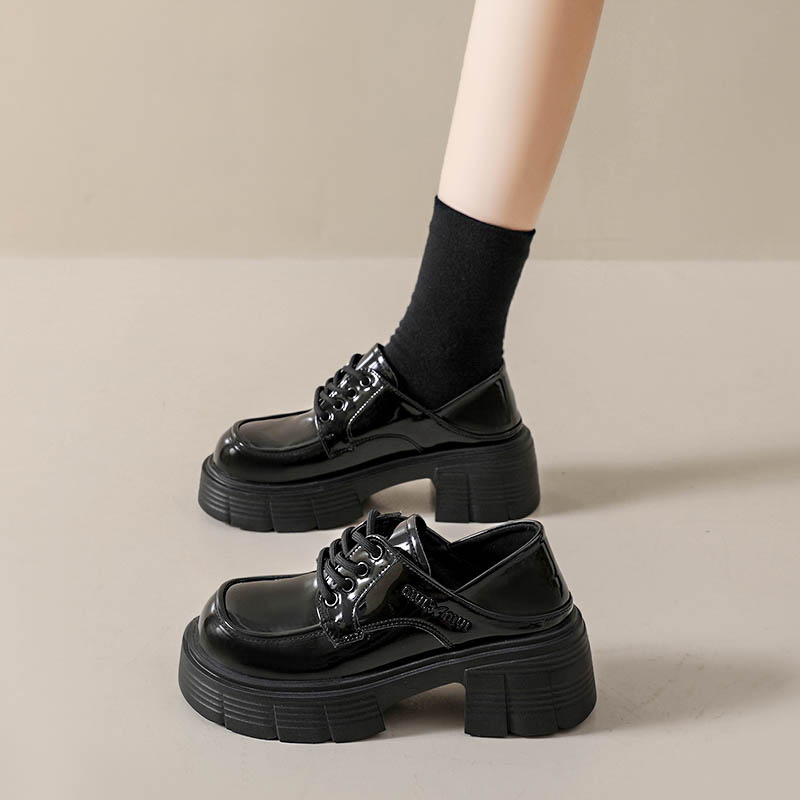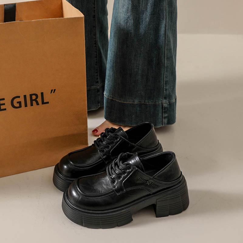 英伦风黑色小皮鞋子女2025新款秋季厚底乐福鞋女粗跟圆头单鞋34码