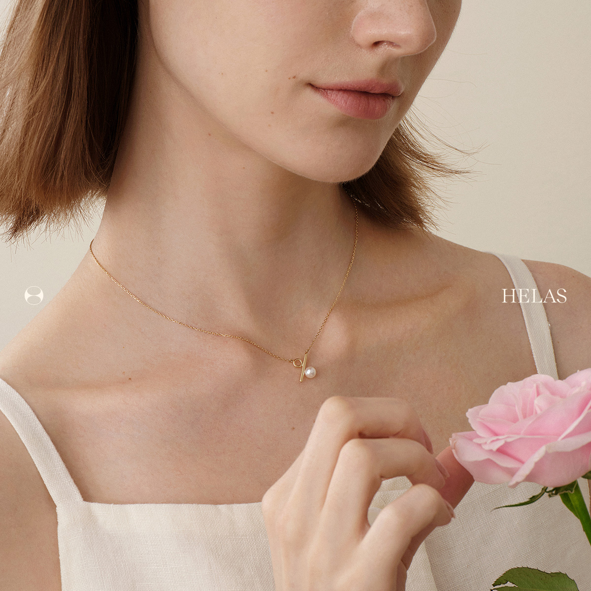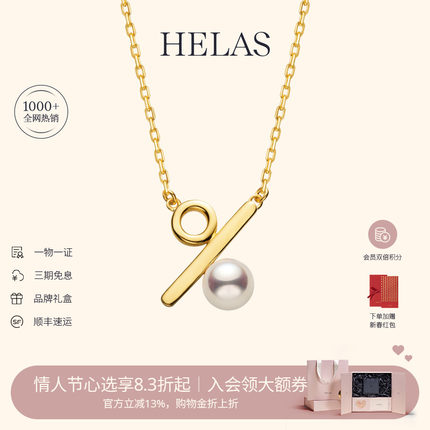 HELAS赫拉百分号项链Akoya海水珍珠颈链女18K金吊坠百分百颈饰