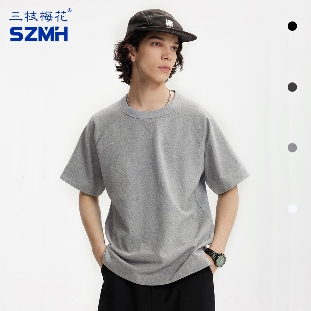 三枝梅花短袖t恤男宽松春夏新款纯棉休闲T恤女纯色百搭情侣运动T