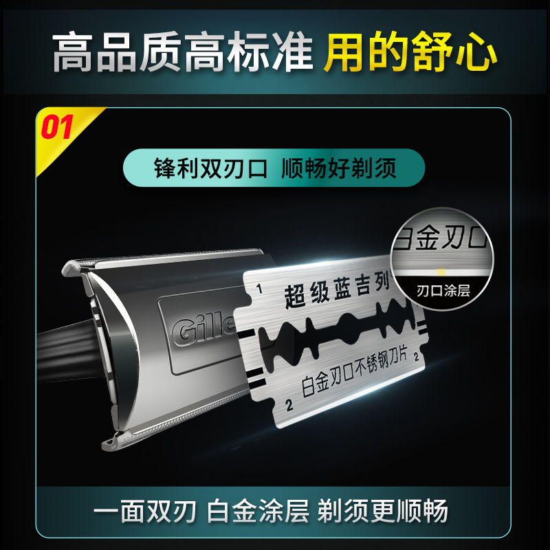 吉列超级蓝不锈钢双面刀片正品经典男士手动刮胡刀片老式剃须刀片