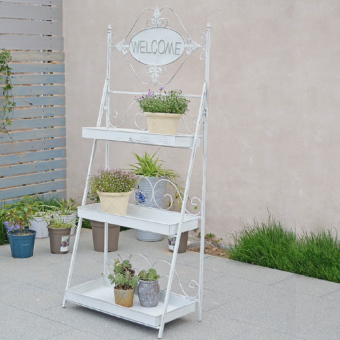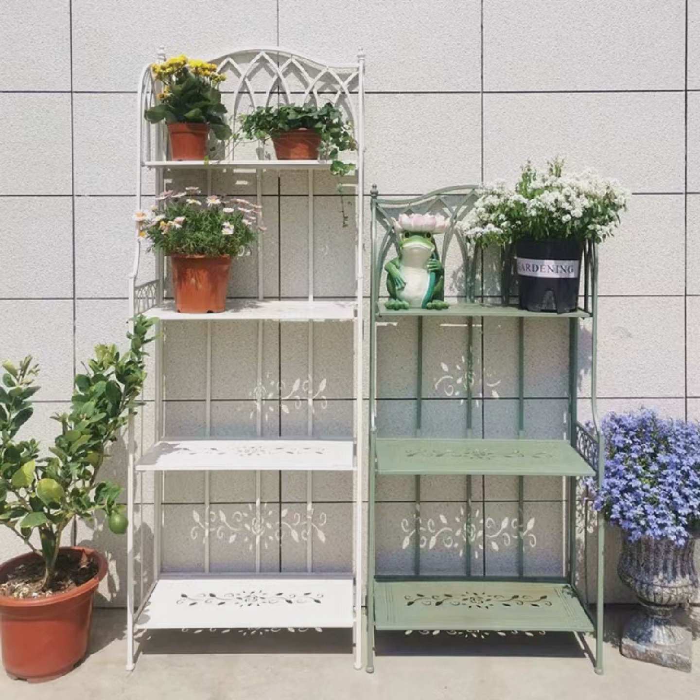 欧式可折叠多层阳台铁艺花架室内复古置物架作旧多肉落地式花盆架