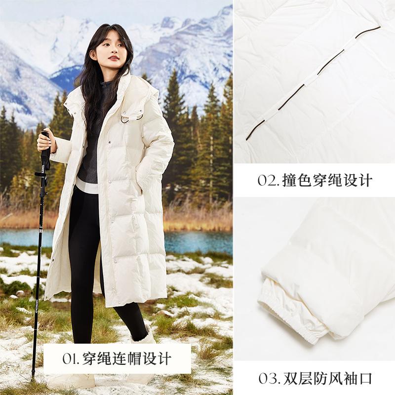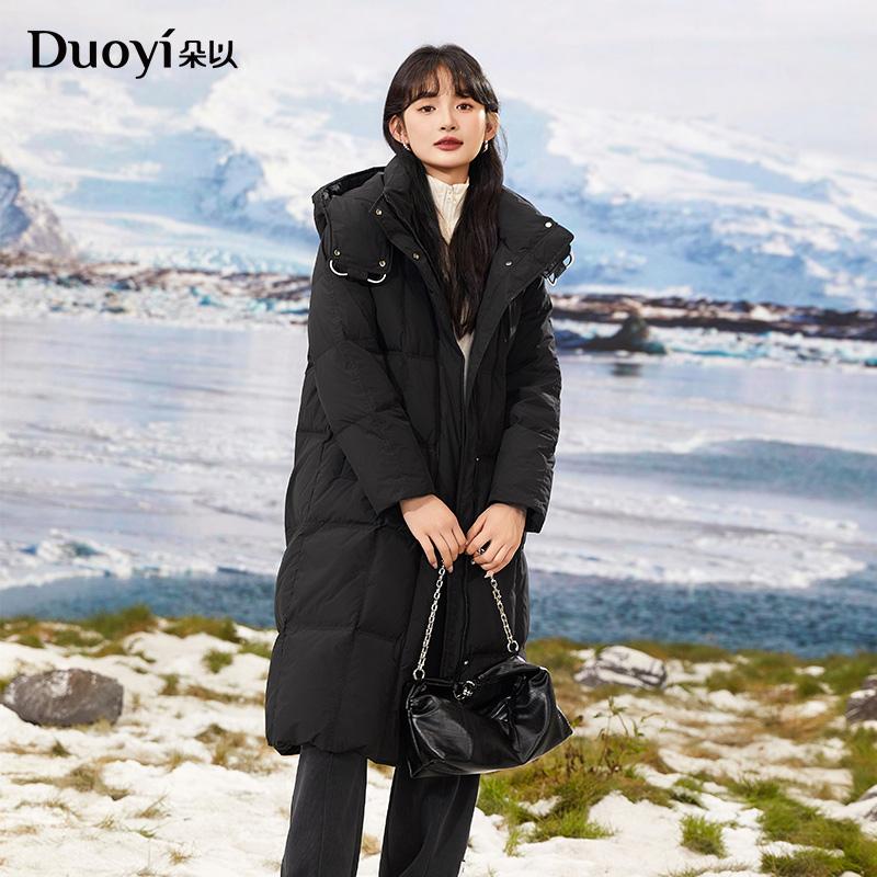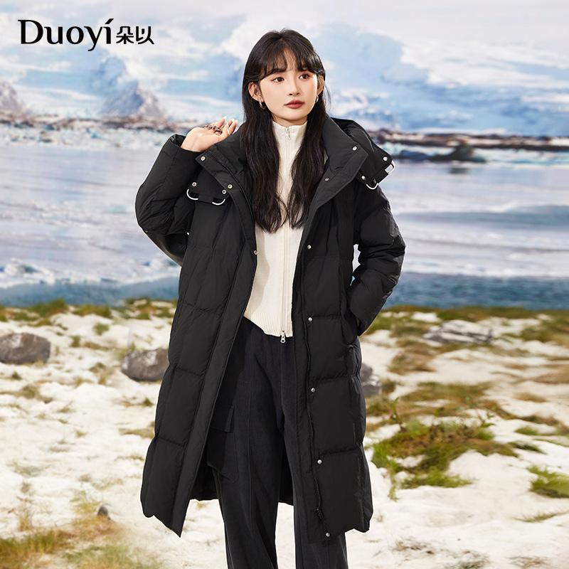 朵以2024冬季新款时尚休闲撞色穿绳连帽中长款羽绒服保暖外套女