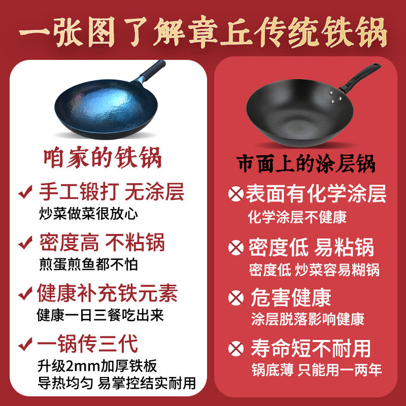 正宗章丘手工铁锅无涂层质保10年