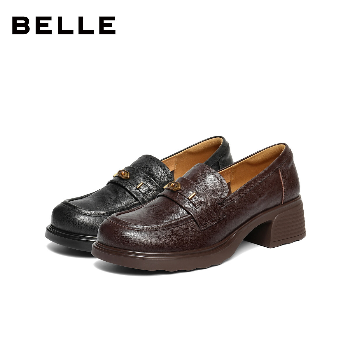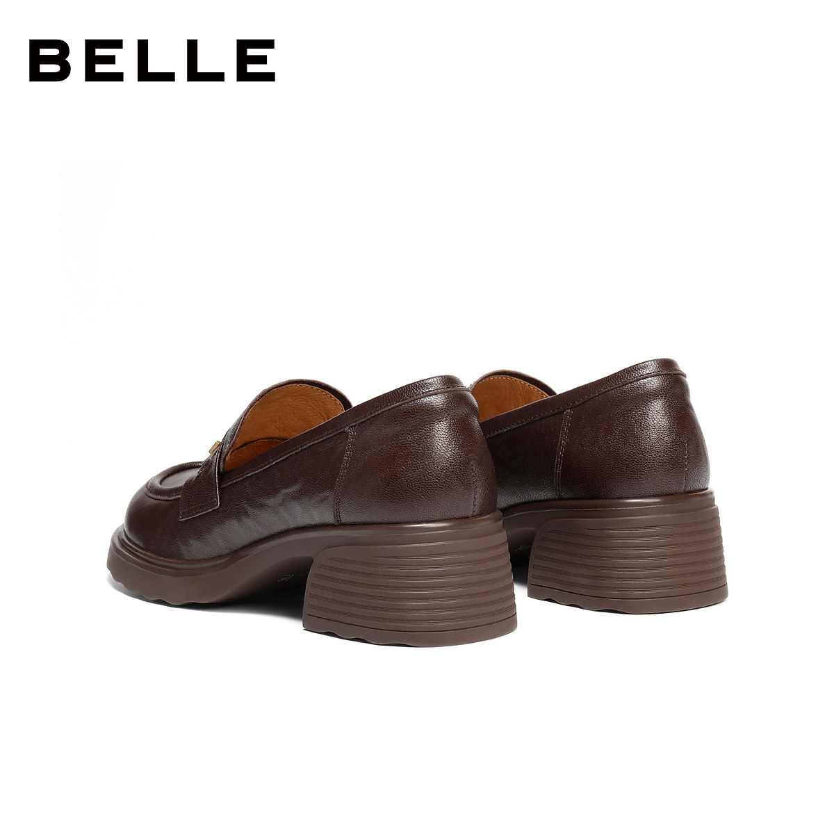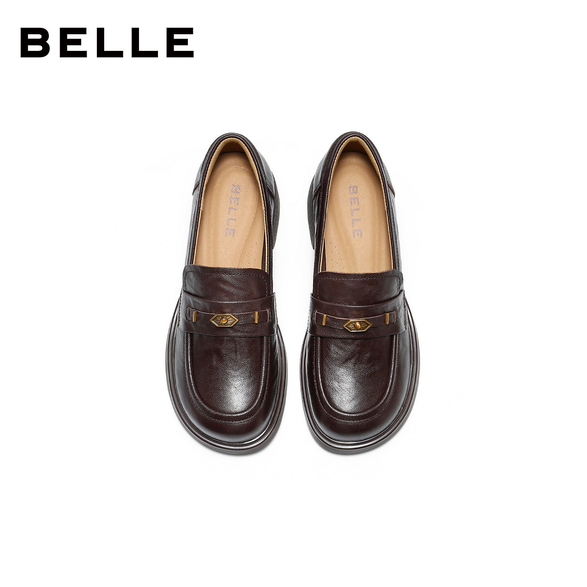 百丽复古抓皱面乐福鞋女26春新款商场同款真皮乐福鞋子L8032AA6预