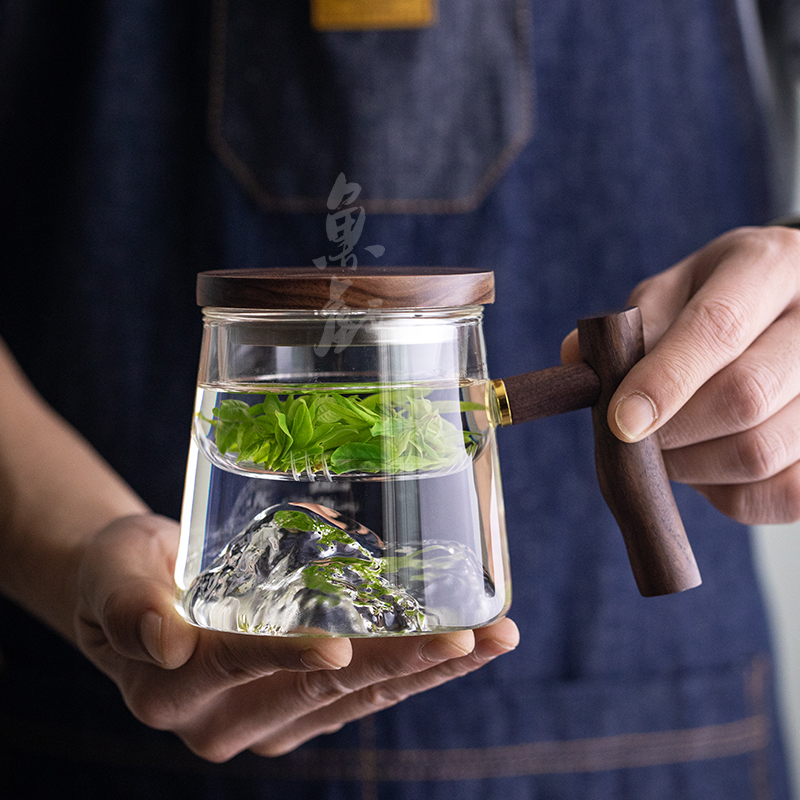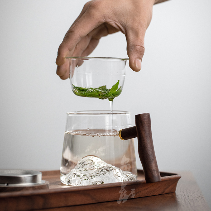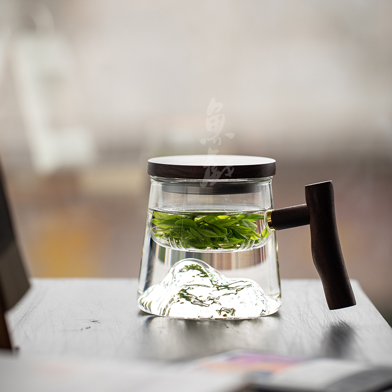 日式玻璃茶杯茶水分o离绿茶个人专用喝茶杯子办公室泡茶杯带把水