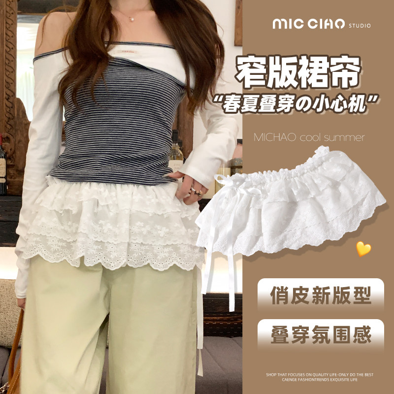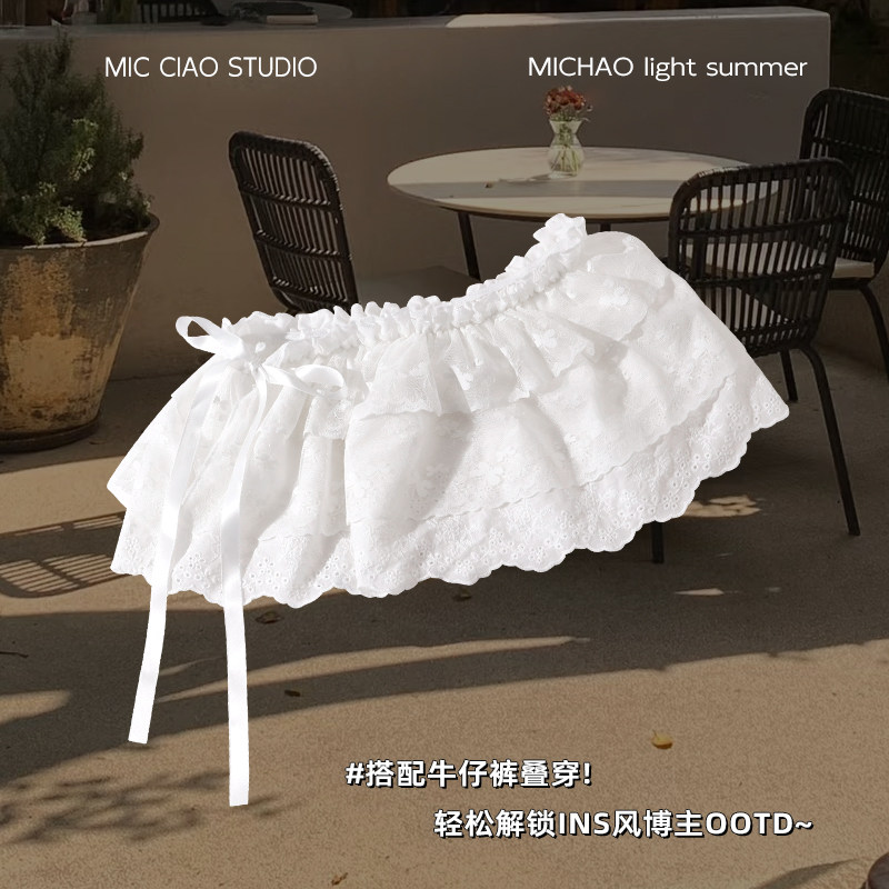 白色蕾丝花边屁帘女春夏季配牛仔裤叠穿半身裙时髦系带短裙蛋糕裙