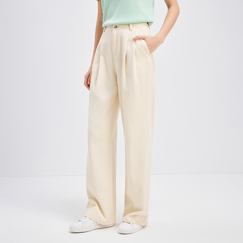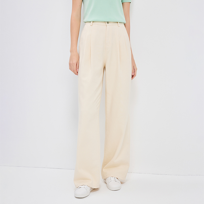 [纯棉]Navigare意大利小帆船直筒牛仔裤女秋季卡其色显瘦裤子
