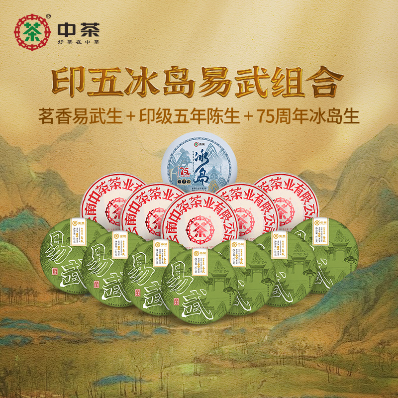 中茶普洱茶组合 75周年冰岛1饼+印级五年生茶5饼+易武生茶7饼