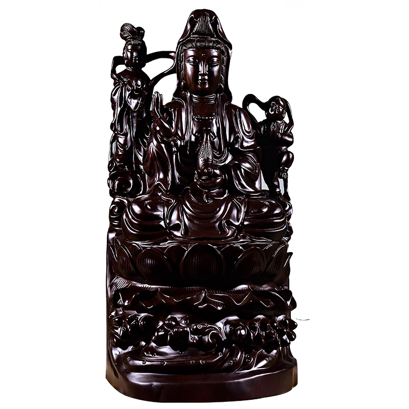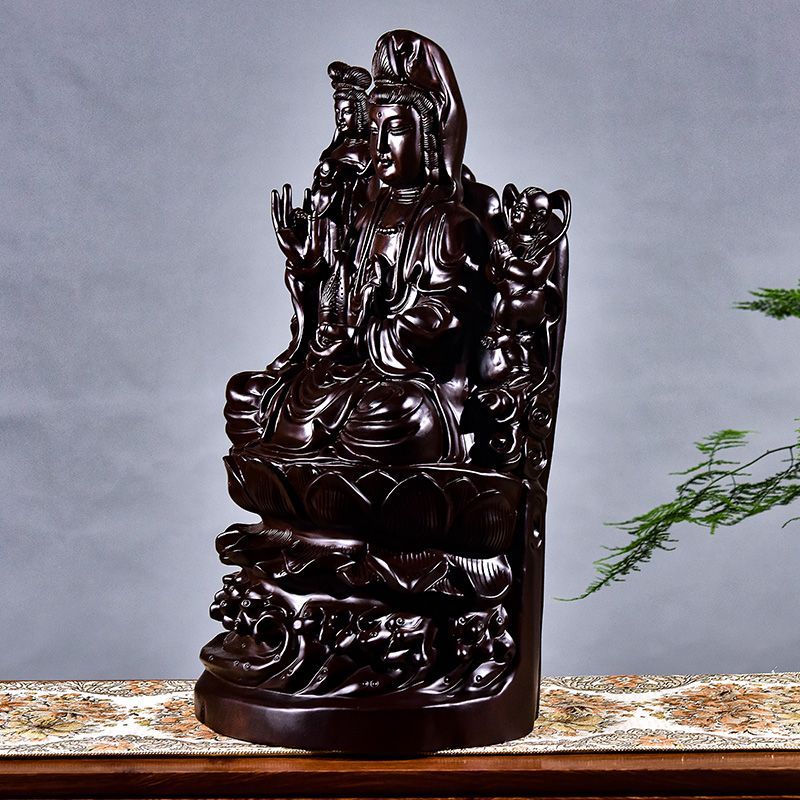 极速木雕观音摆件观音佛像供奉家用善财童子龙P女佛像雕刻工艺品