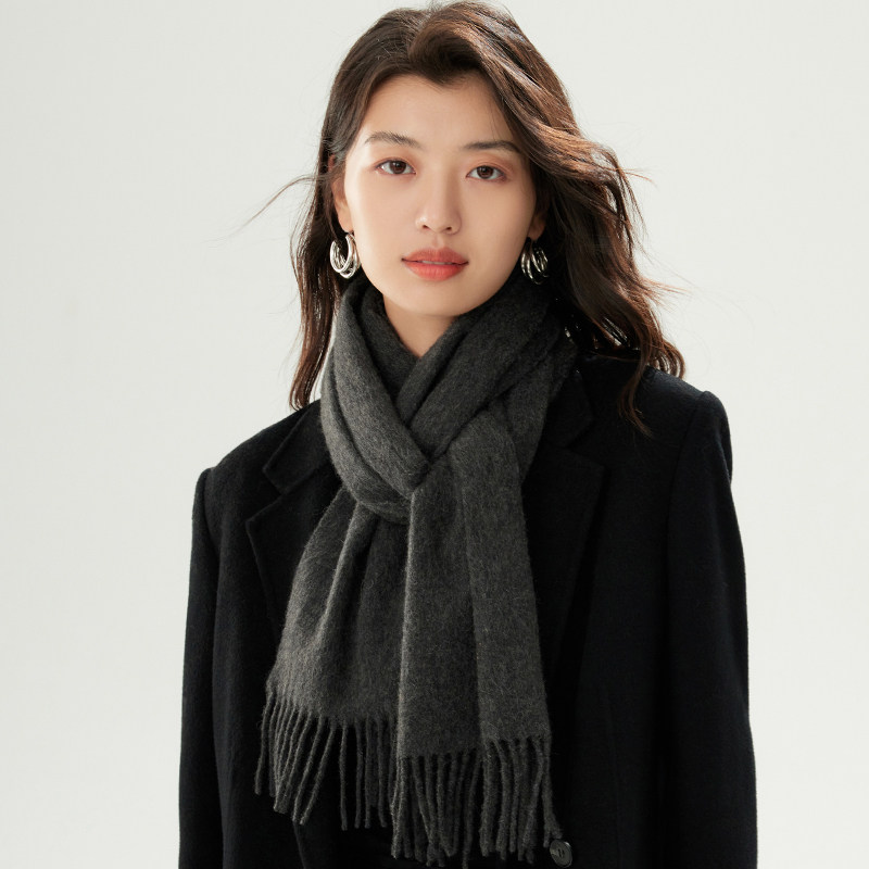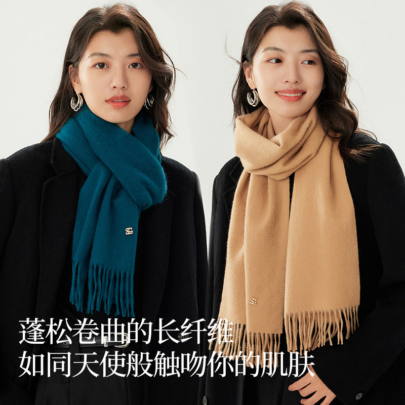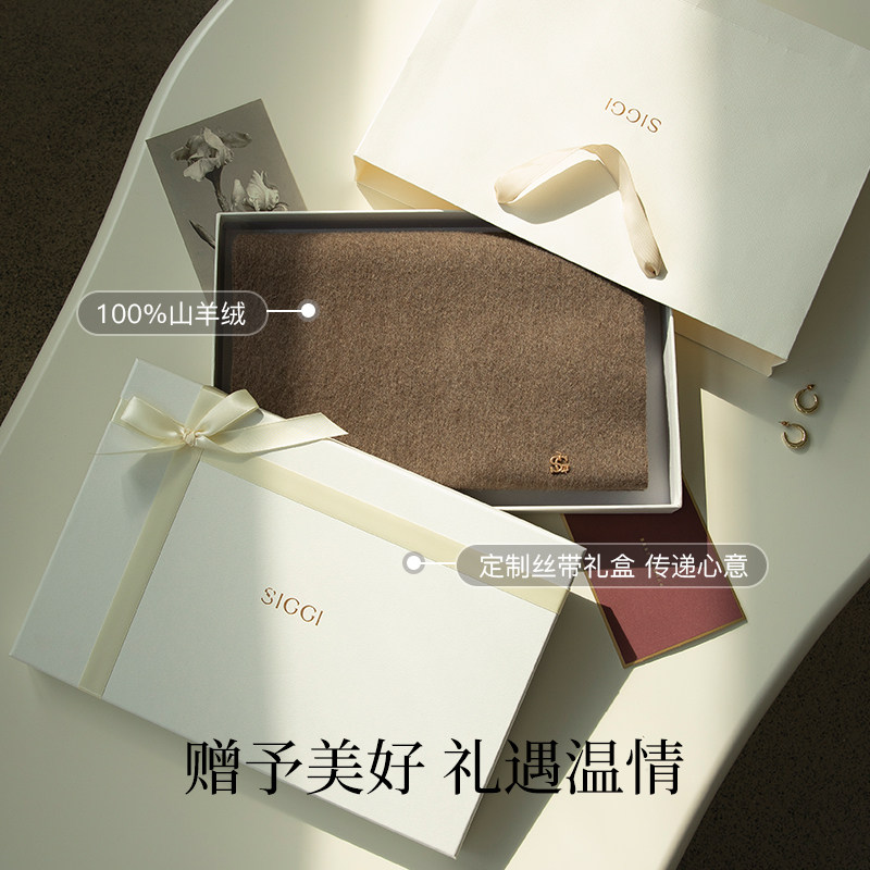 siggi 100%山羊绒围巾女秋冬季纯色百搭窄版披肩驼色生日节日礼物