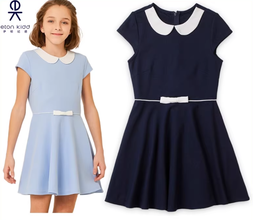 伊顿纪德校服女童学生裙子公主裙新款圆领淑女短袖连衣裙17L221预
