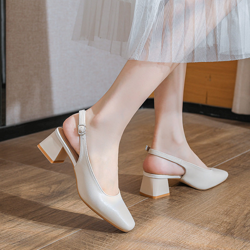 法式方头包头凉鞋女中跟玛丽珍鞋