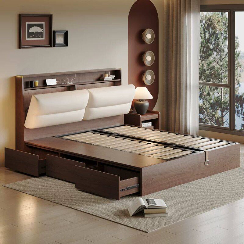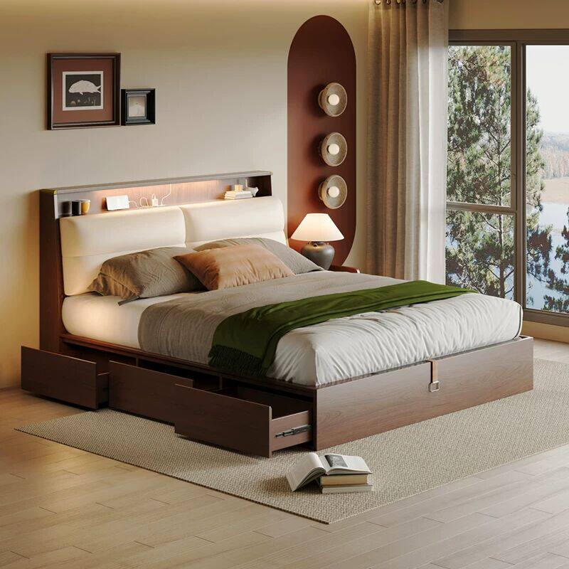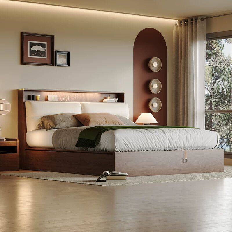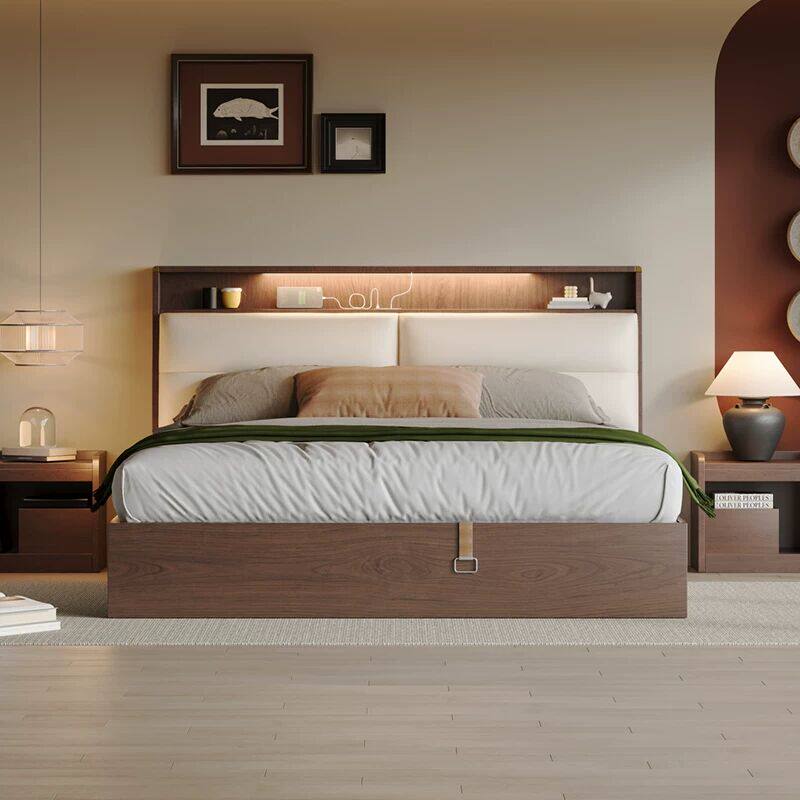 全友家居官网高箱储物床中古风实木床现代简约小户型主卧双人大床