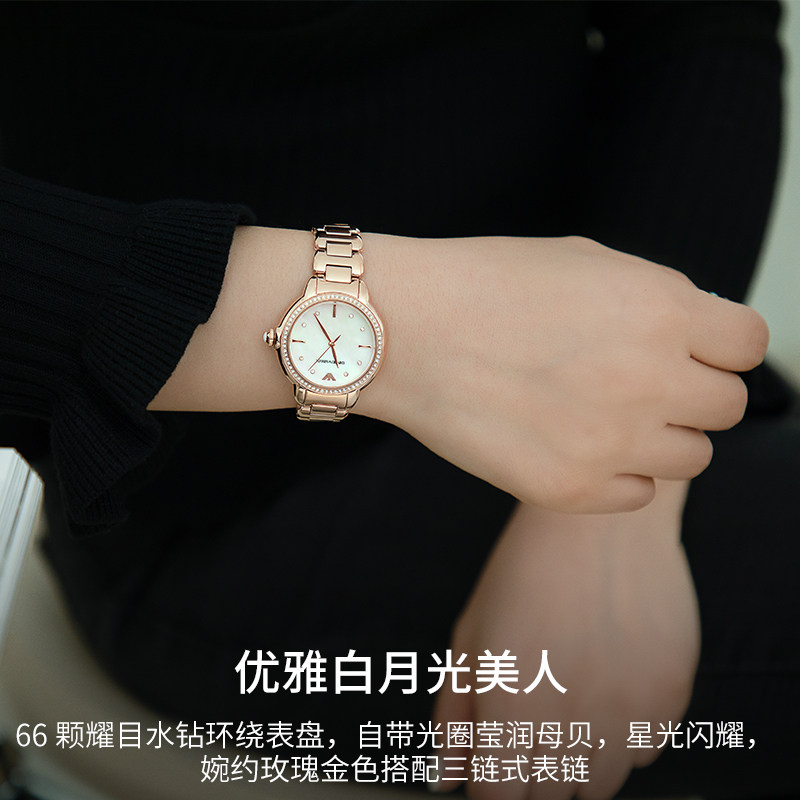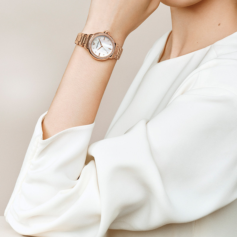 阿玛尼白月光女士石英腕表