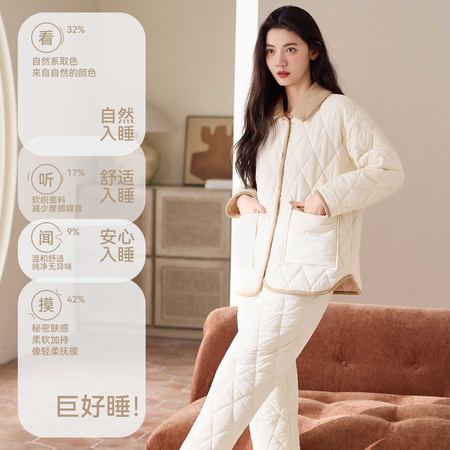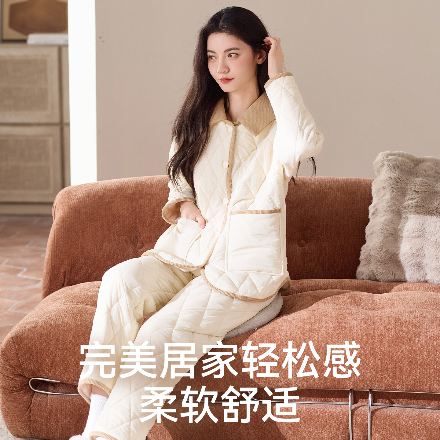 猫人优品羽绒夹棉女款家居服套装