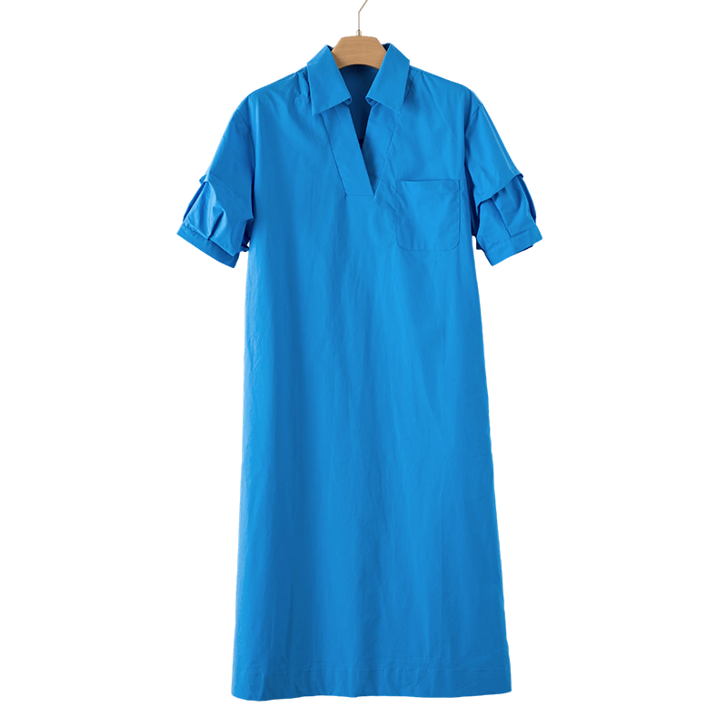 晚白【断码清仓】早秋翻领衬衫裙子收腰V领连衣裙