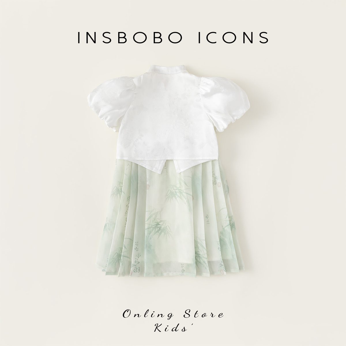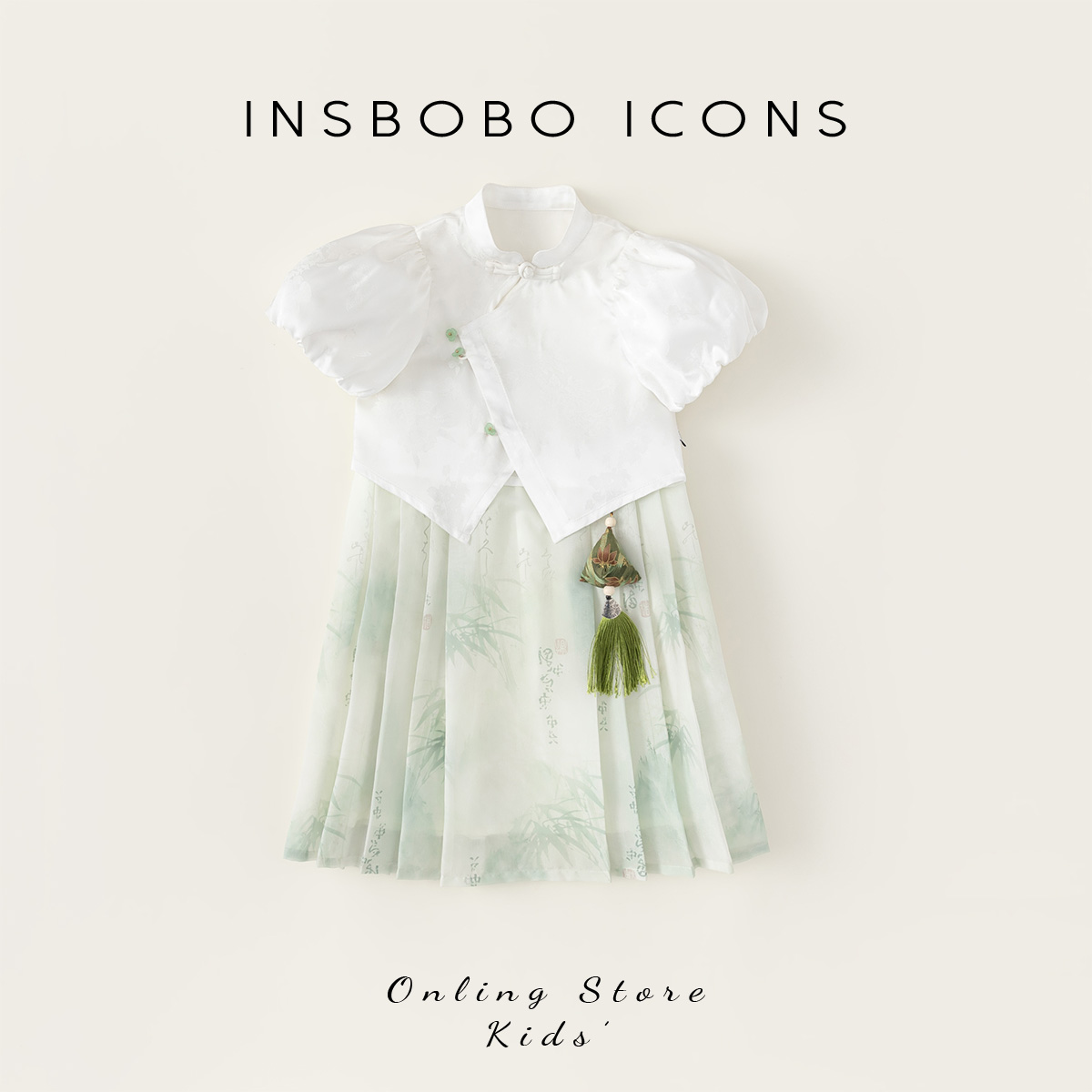 INSbobo女童夏装中式套装儿童汉服新款国风两件套女宝宝童装洋气