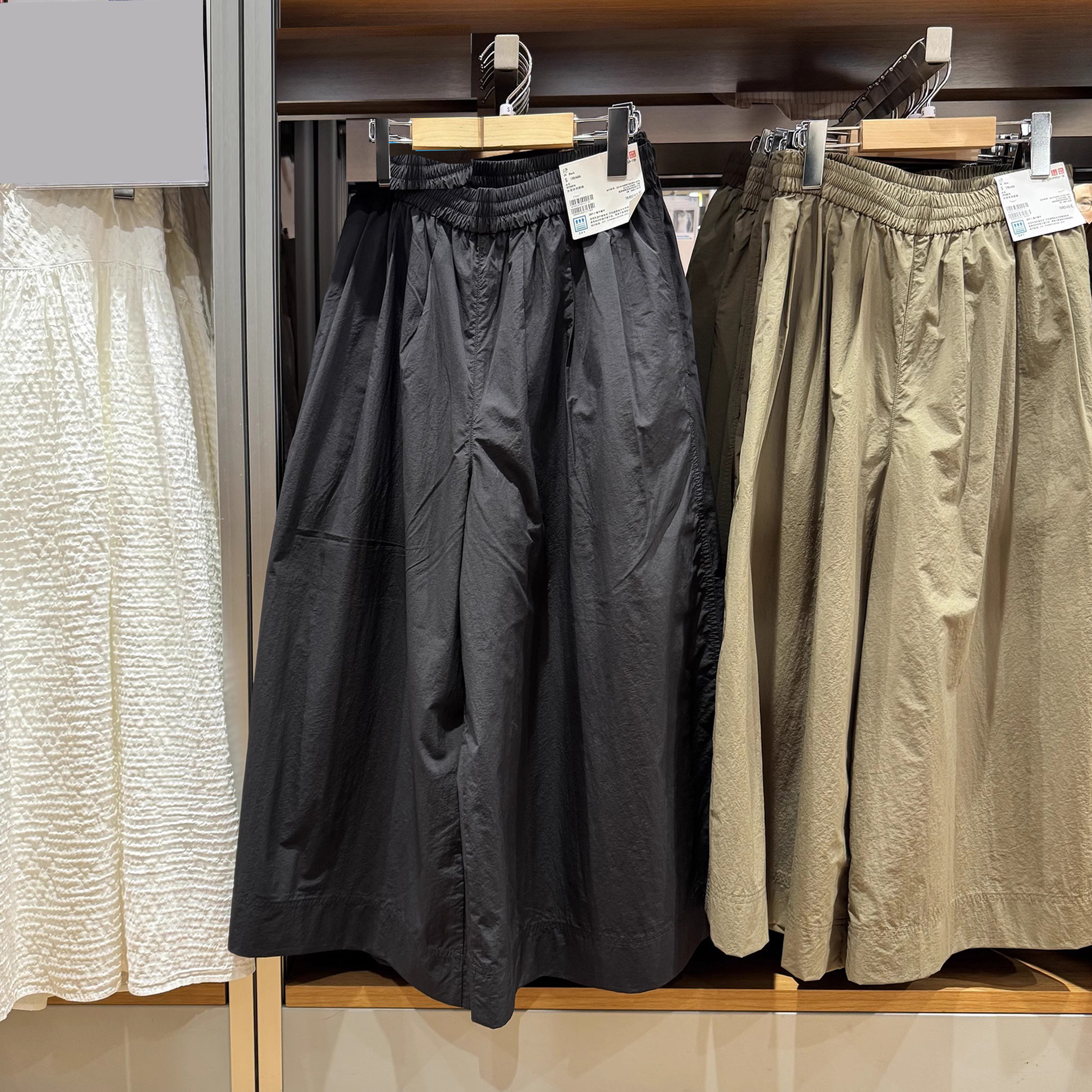女装休闲裙裤/七分裤裤子尼龙25秋冬新款479399纯色松紧腰阔腿裤