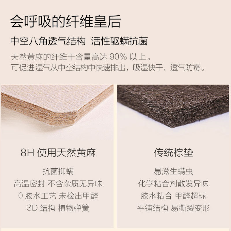 8H青少年儿童护脊黄麻棕硬床垫1.5m独袋静音弹簧席梦思榻榻米