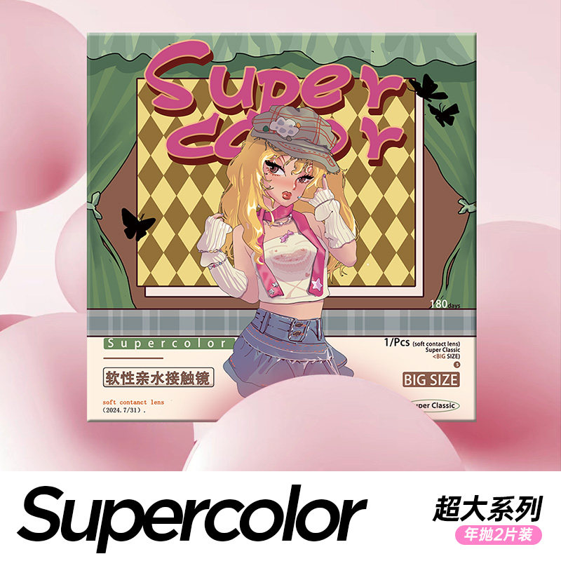 Supercolor爆款【超大甜心娃娃】年抛2片装彩色隐形眼镜网红正品