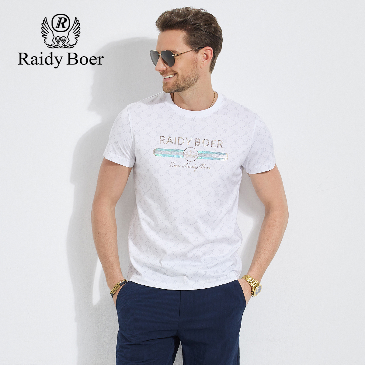 雷迪波尔男装短袖T恤春夏新款圆领纯棉舒适亲肤烫钻修身上衣
