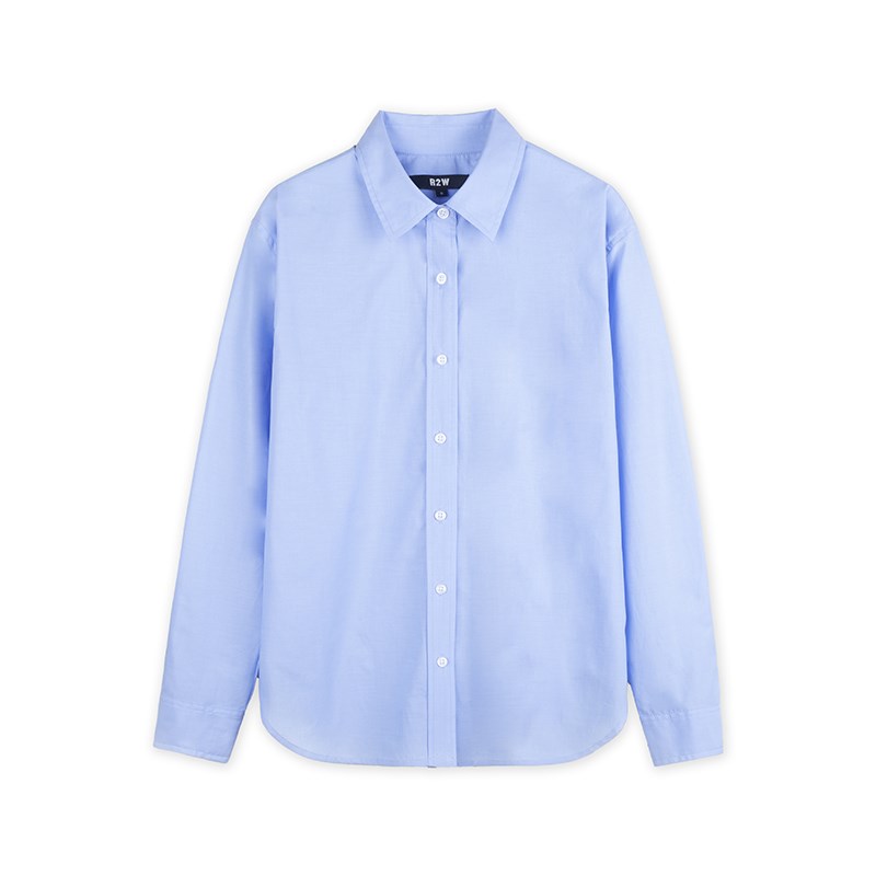 RTW美式休闲蓝色衬衫女春秋薄款白色府绸职业设计感衬衣宽松显瘦