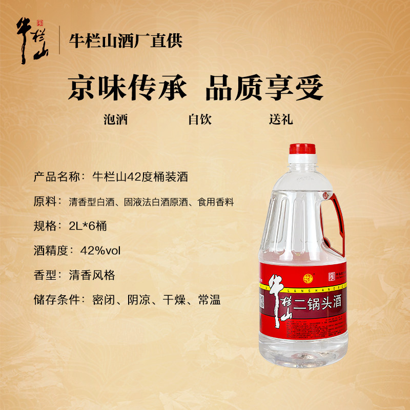 【酒厂直供】北京牛栏山二锅头42度大桶酒2L*6散装酒整箱泡酒