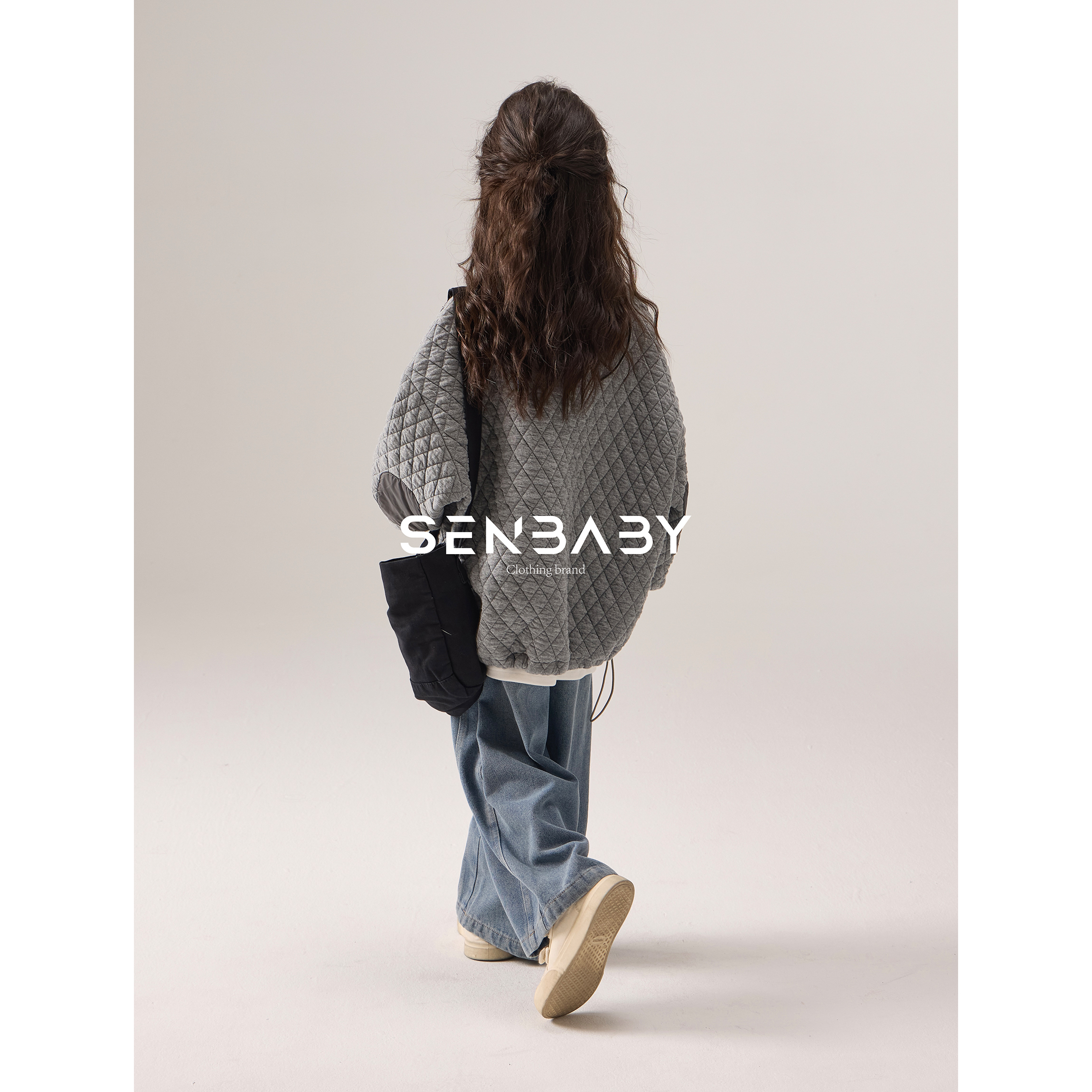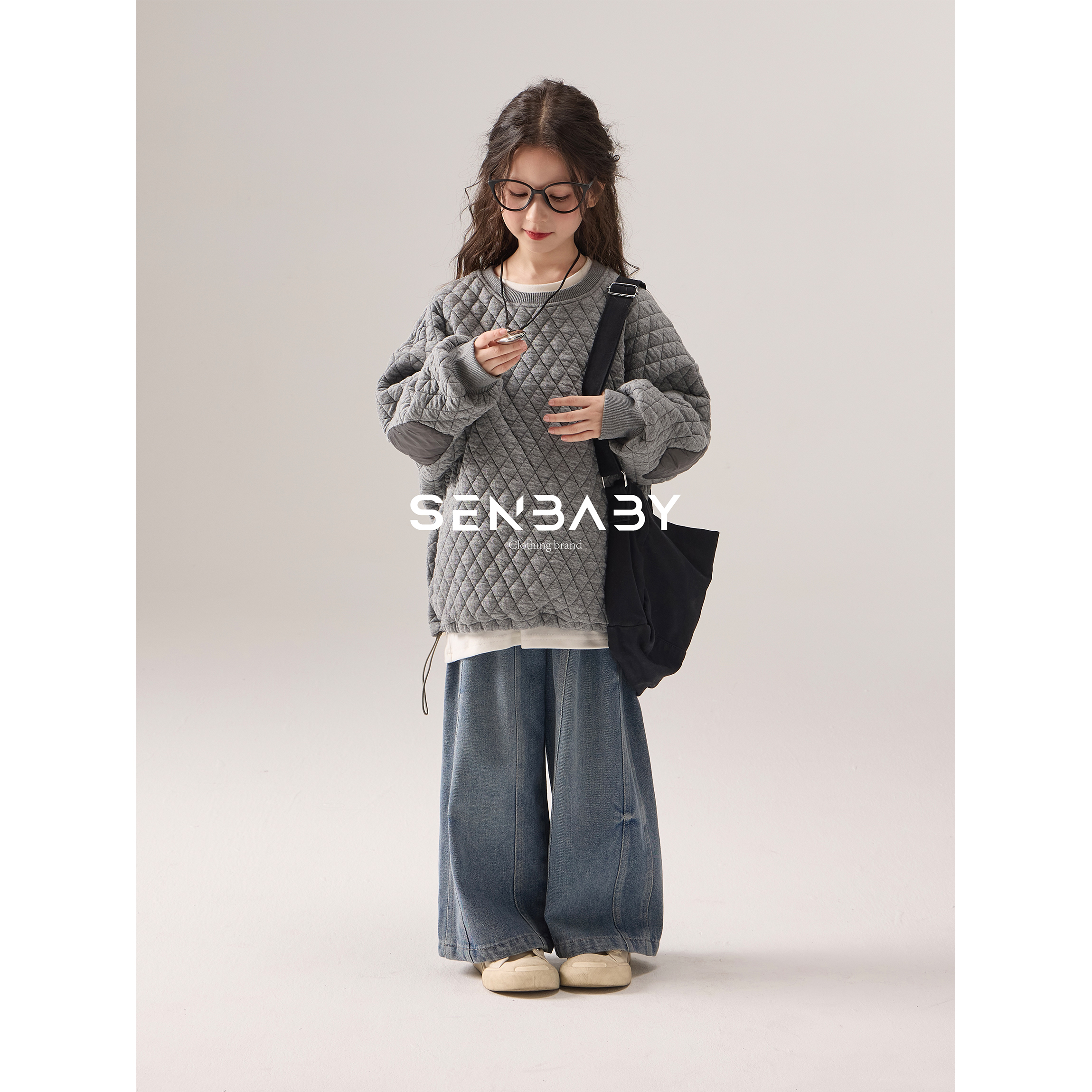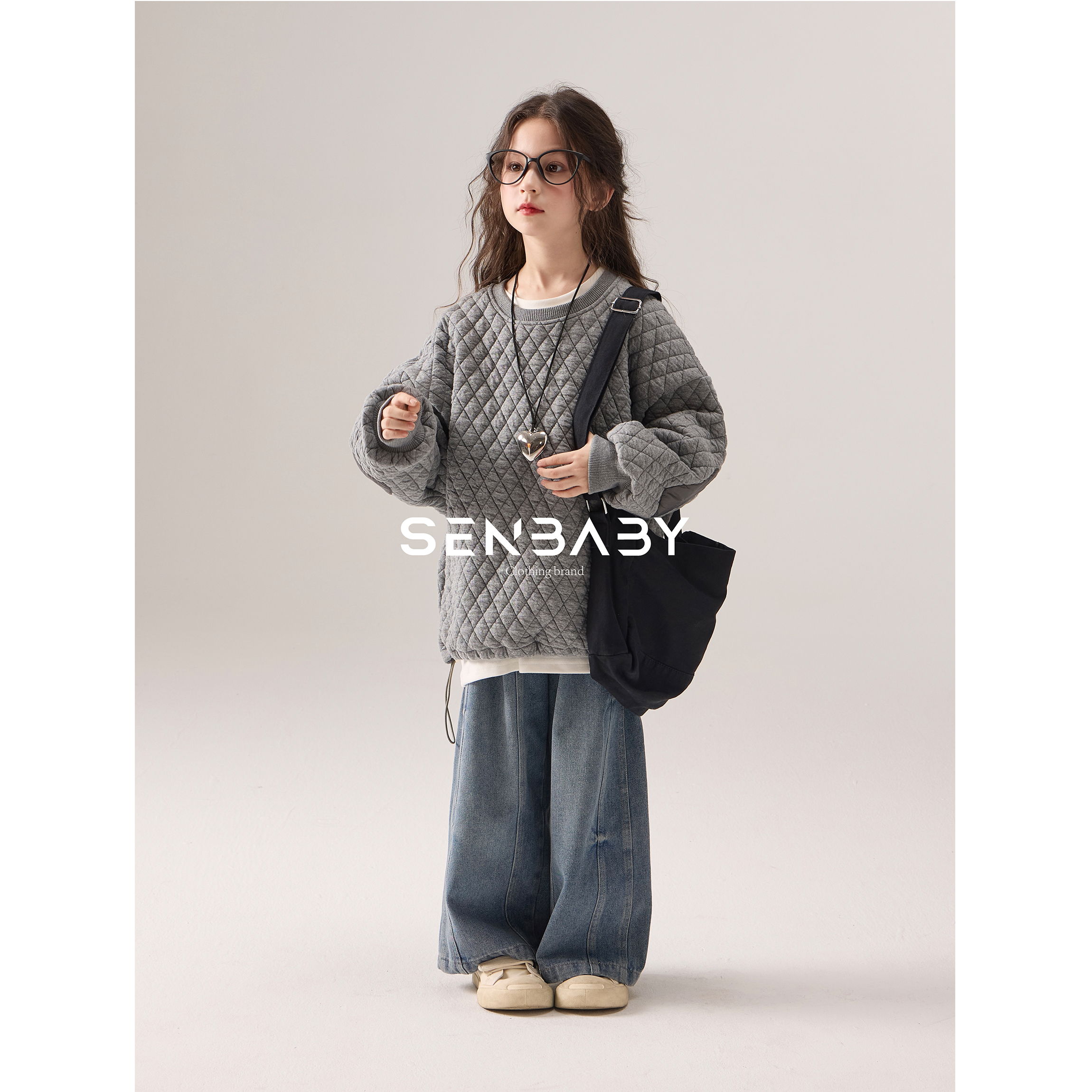 【现货】senbaby童装女童牛仔裤2025新款秋冬儿童加绒竖条牛仔裤