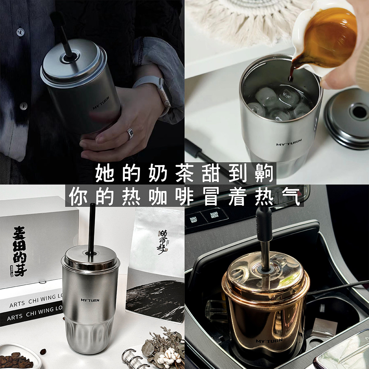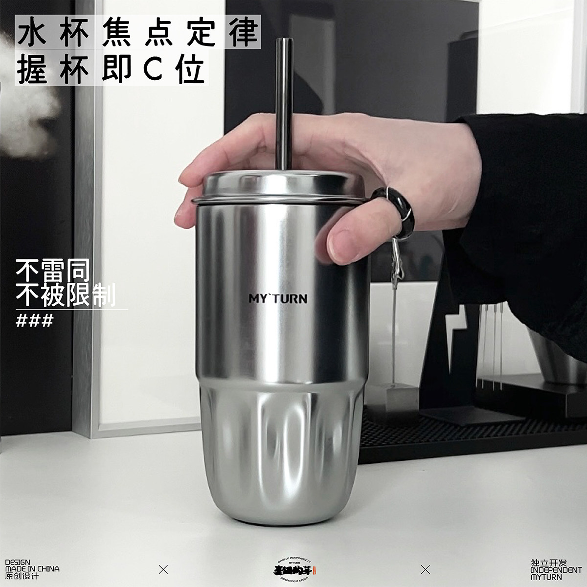 麦田的芽不锈钢直饮吸管杯女生高颜值保温杯咖啡杯大容量杯子水杯