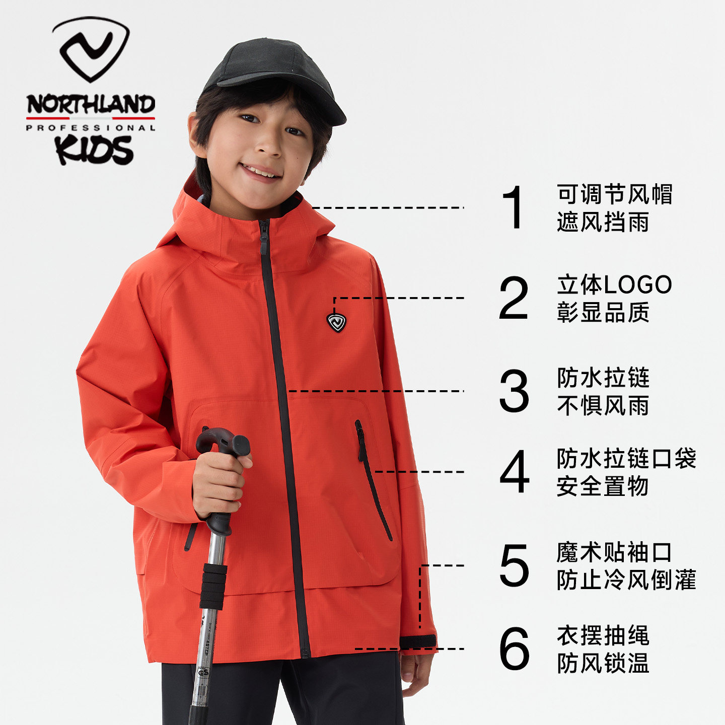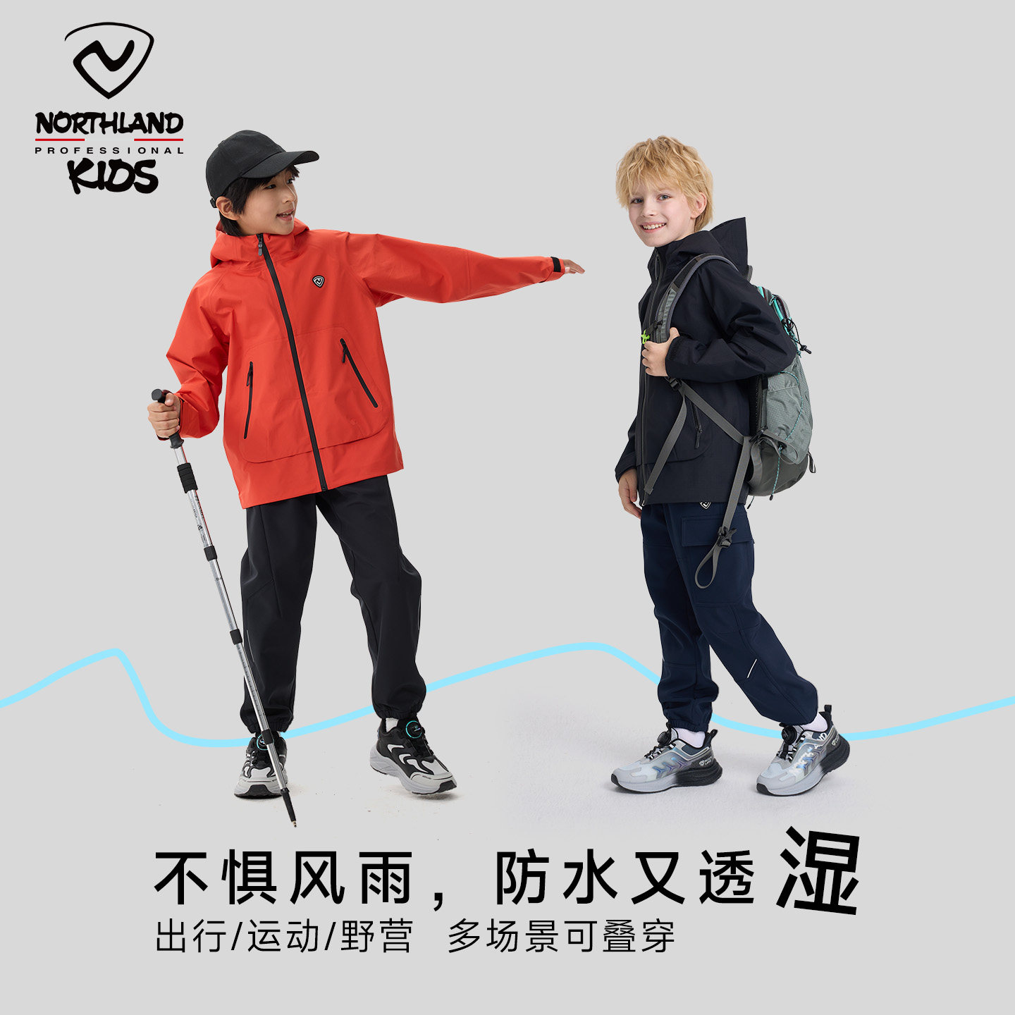 诺诗兰冲锋衣男女童轻量防风防雨