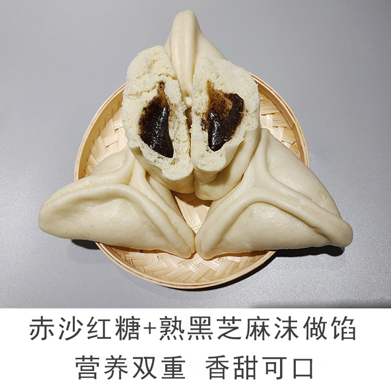 山东手工糖三角馒头红糖黑芝麻包大包子孩子学生营养早餐半成品