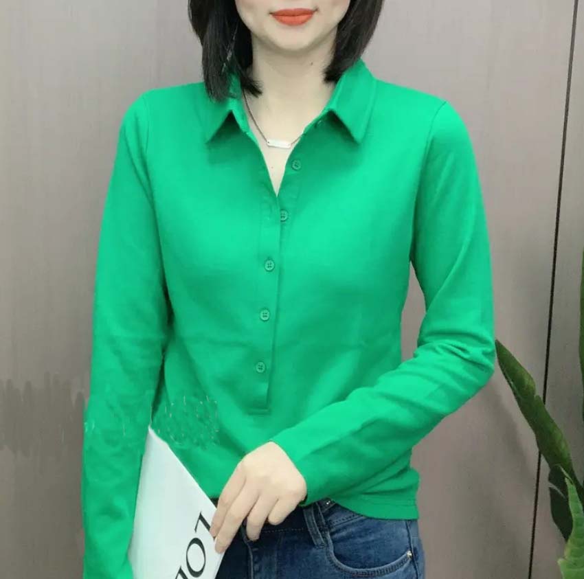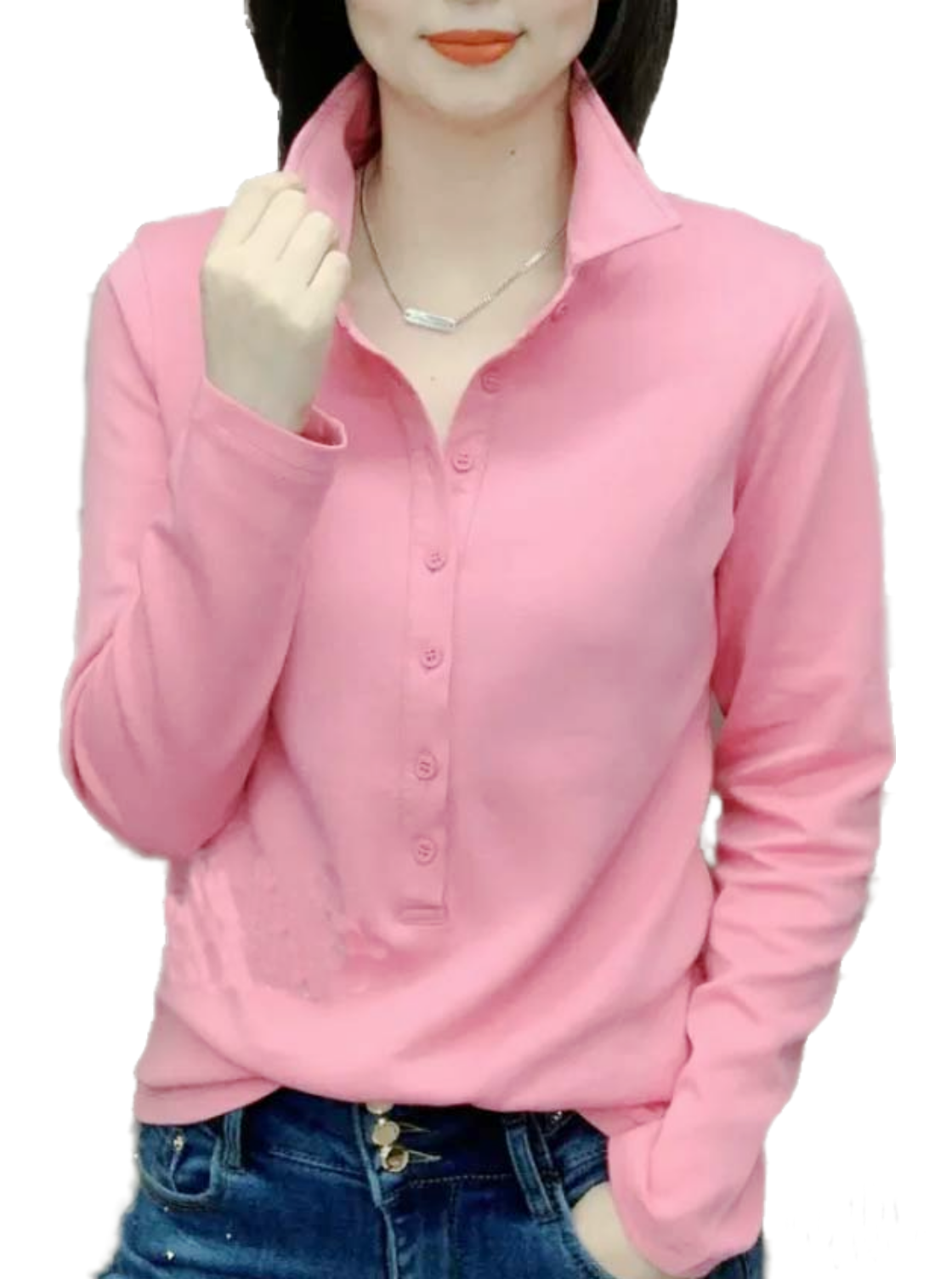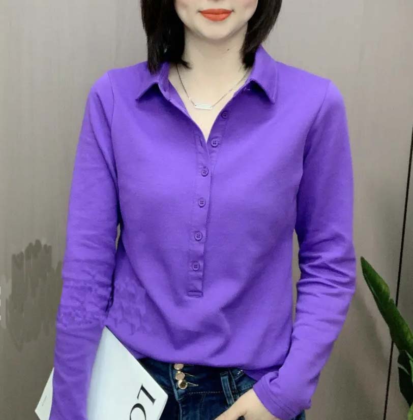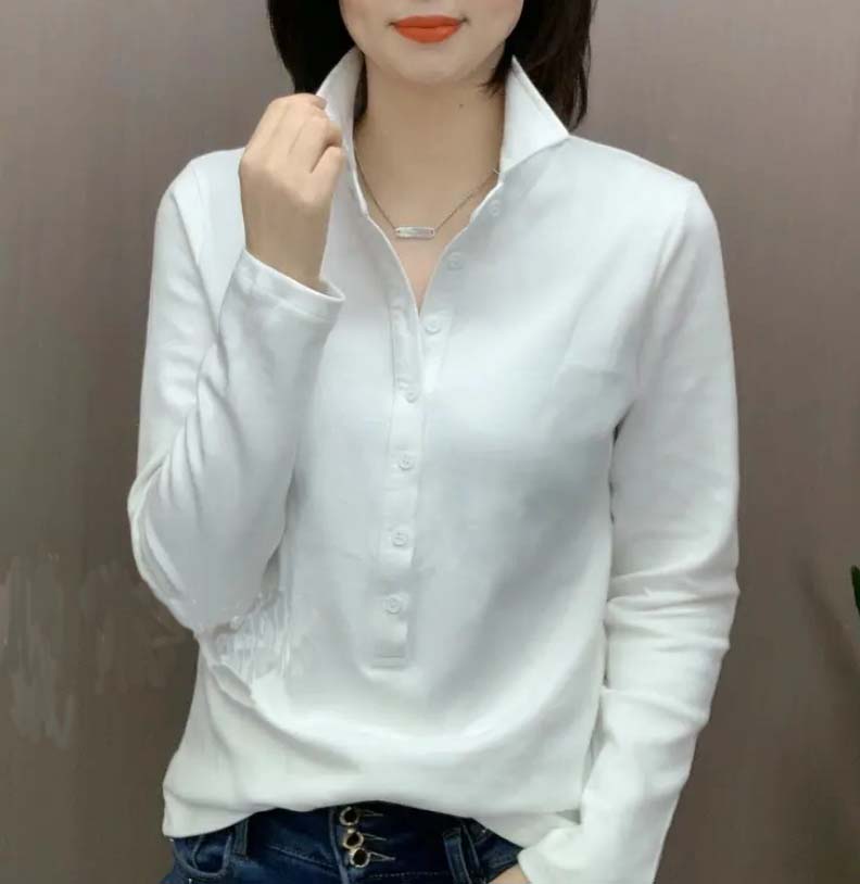 2025秋新款POLO领纽扣T恤女修身显瘦百搭设计感长袖翻领体恤上衣