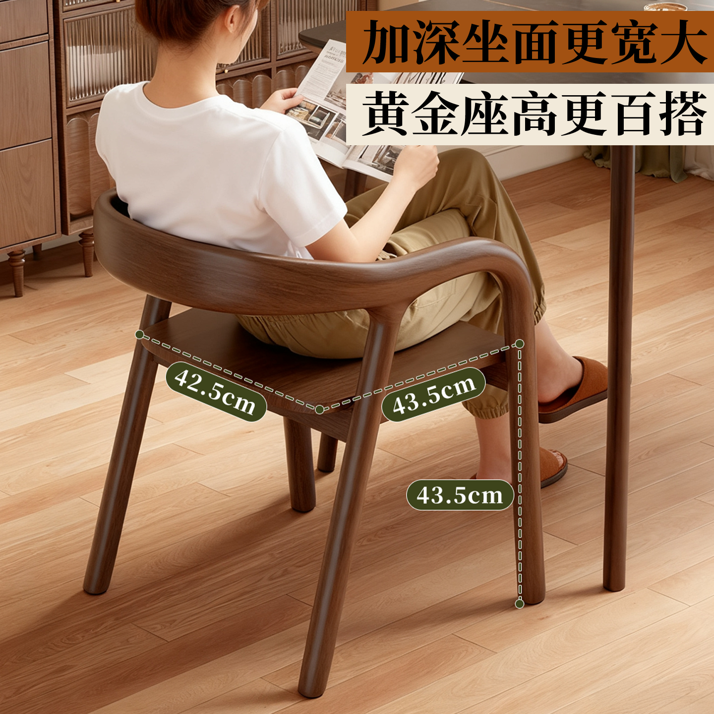 实木椅子家用加厚扶手椅高级办公中古茶椅小户型专用新款简约餐椅
