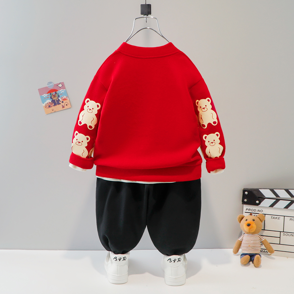 男童套装春秋帅气儿童红色衣服婴儿洋气童装1一3岁宝宝秋装三件套