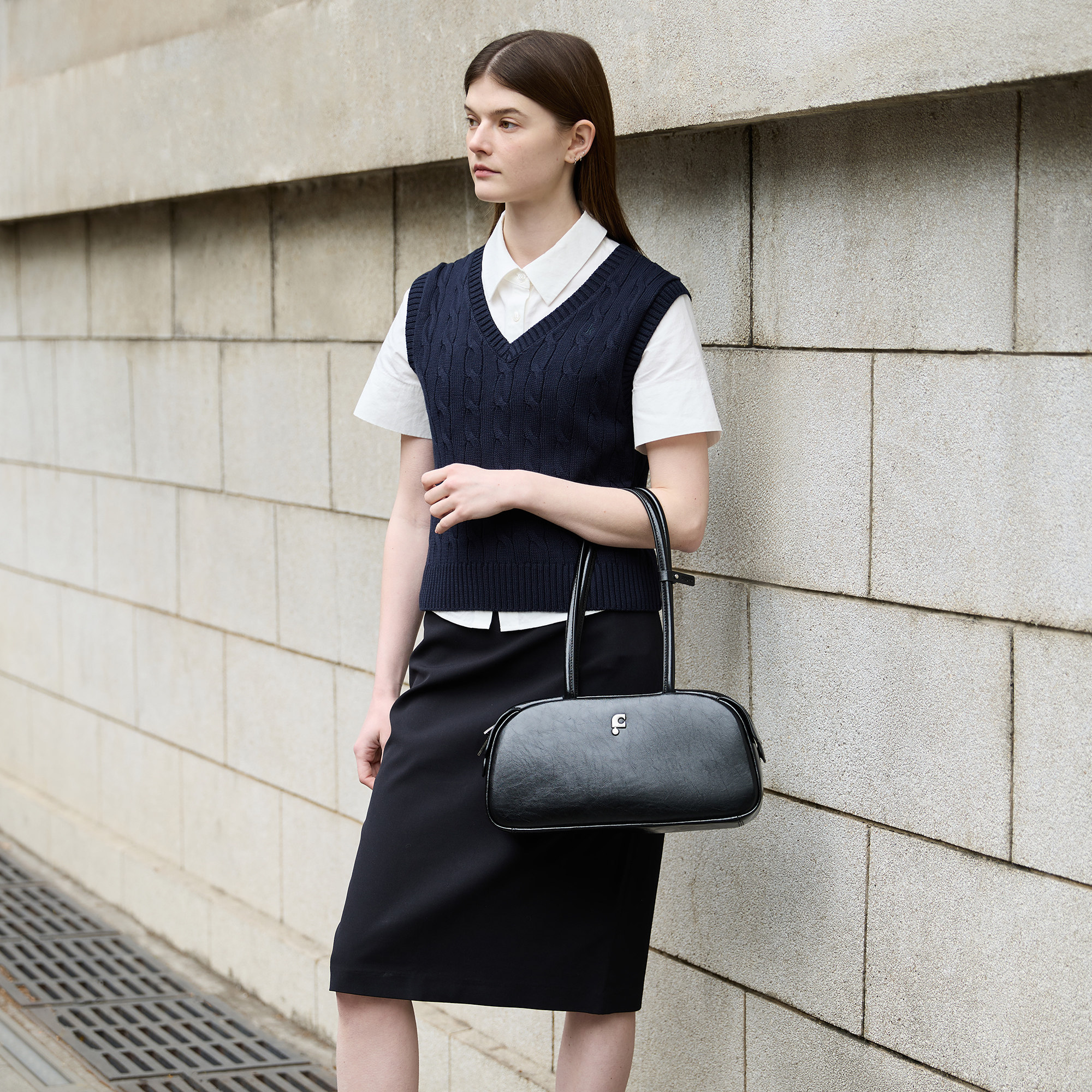 FOFO大号保龄球包原创波士顿包新款腋下包油蜡牛皮百搭时尚枕头包