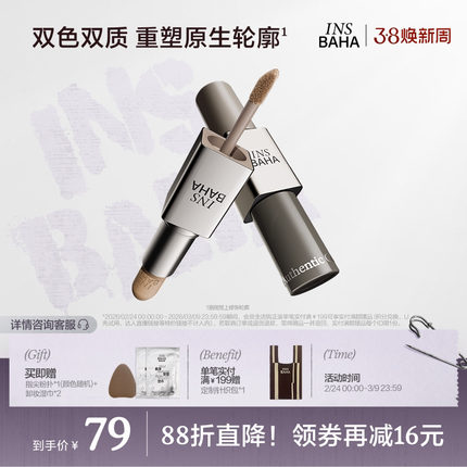 INSBAHA原色波塔双效修容棒哑光立体阴影鼻影自然骨相多用修容液