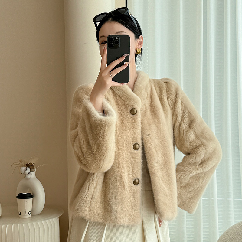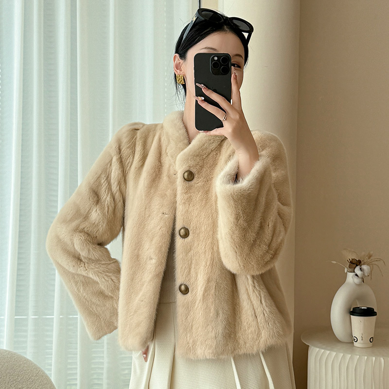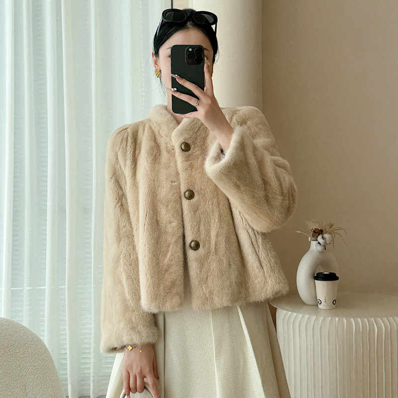 水貂皮大衣女短款立领小香风海宁进口小母貂整貂皮草外套2025新款