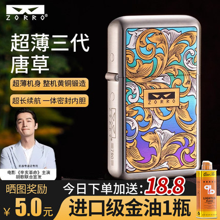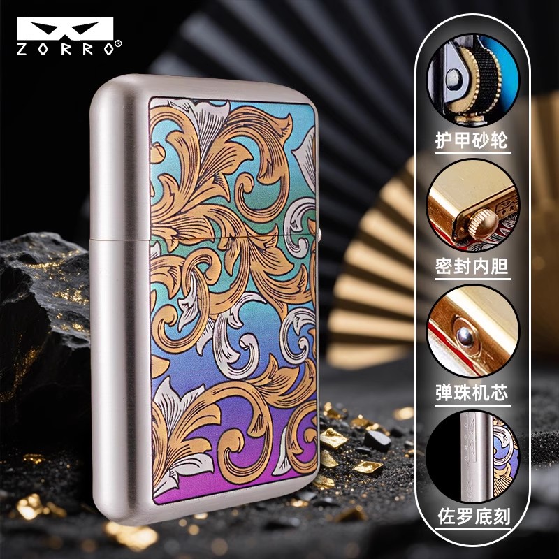 ZORRO佐罗三代机精雕双面唐草防风高品质砂轮煤油打火机高颜值礼