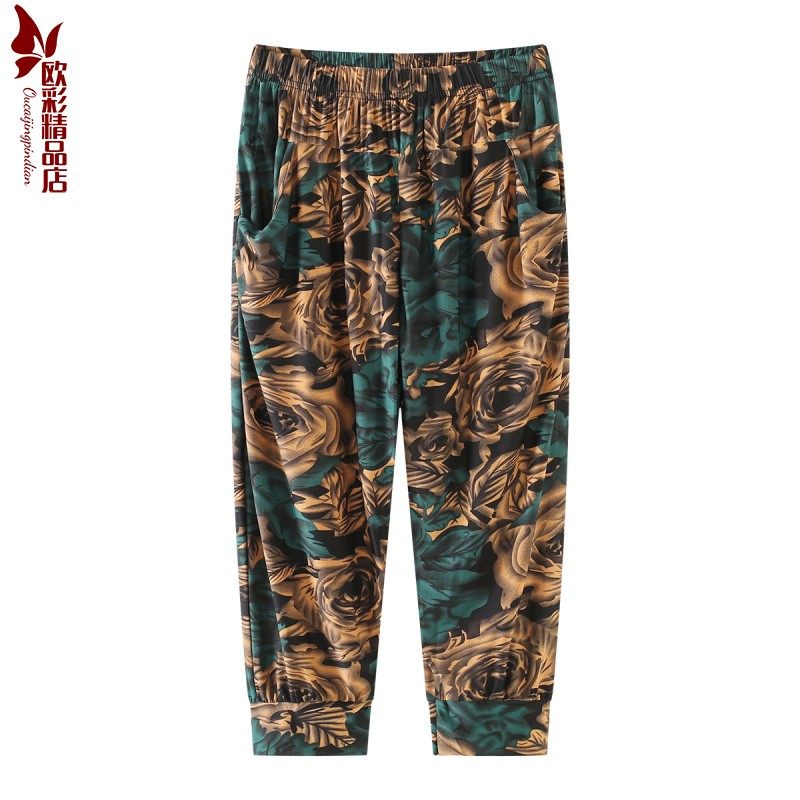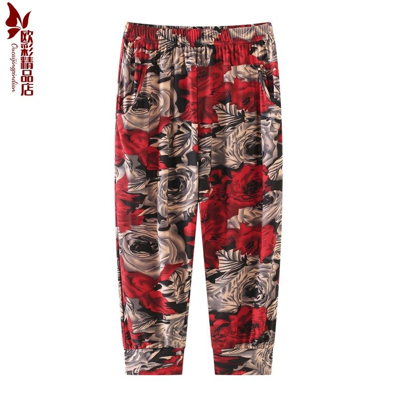老年人奶奶冰丝九分裤七分女灯笼中裤花裤子中老年妈妈夏薄高弹力