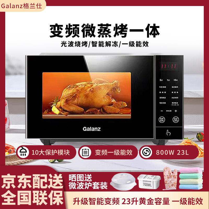格兰仕微波炉智能变频微蒸烤23L大容量一级能效平板家用小型迷你