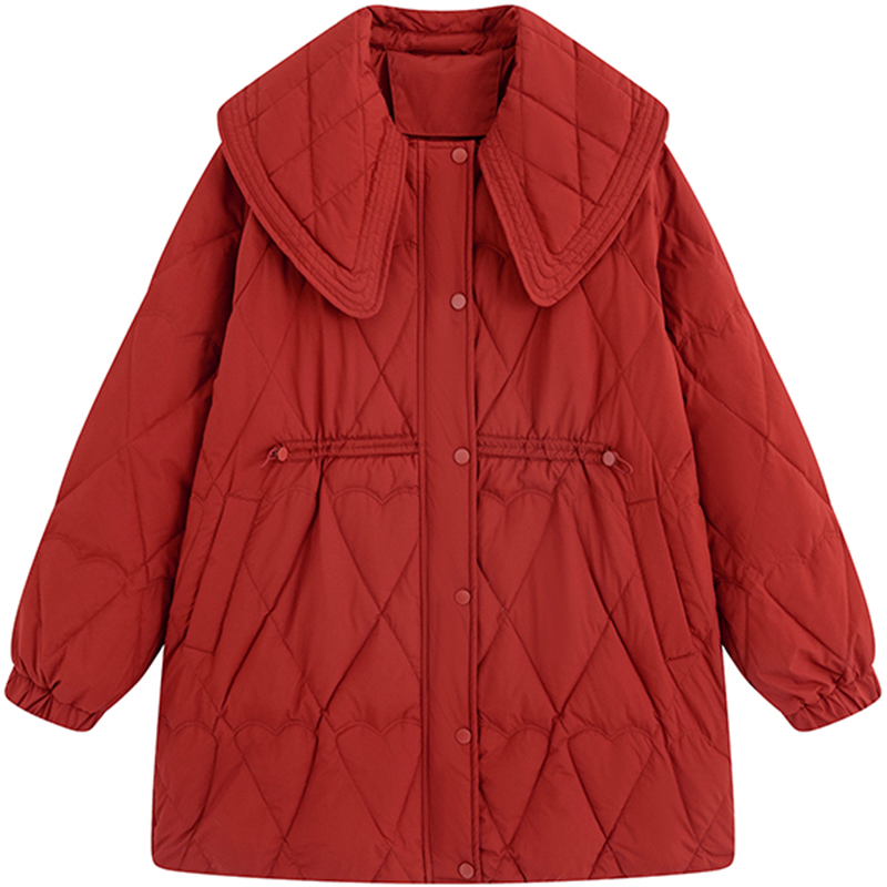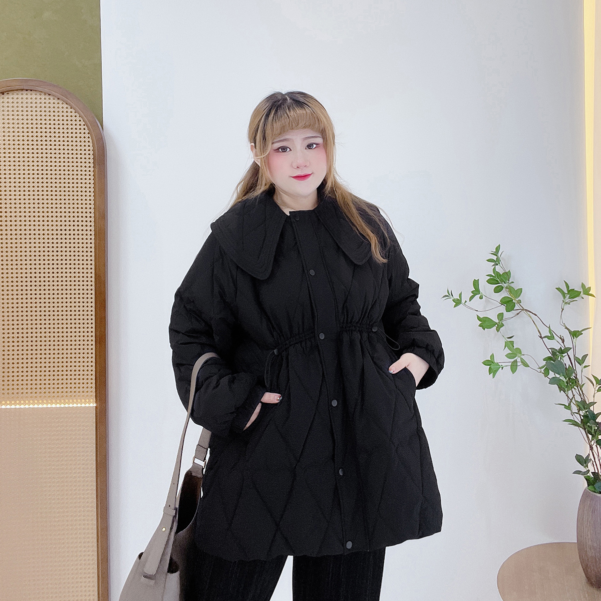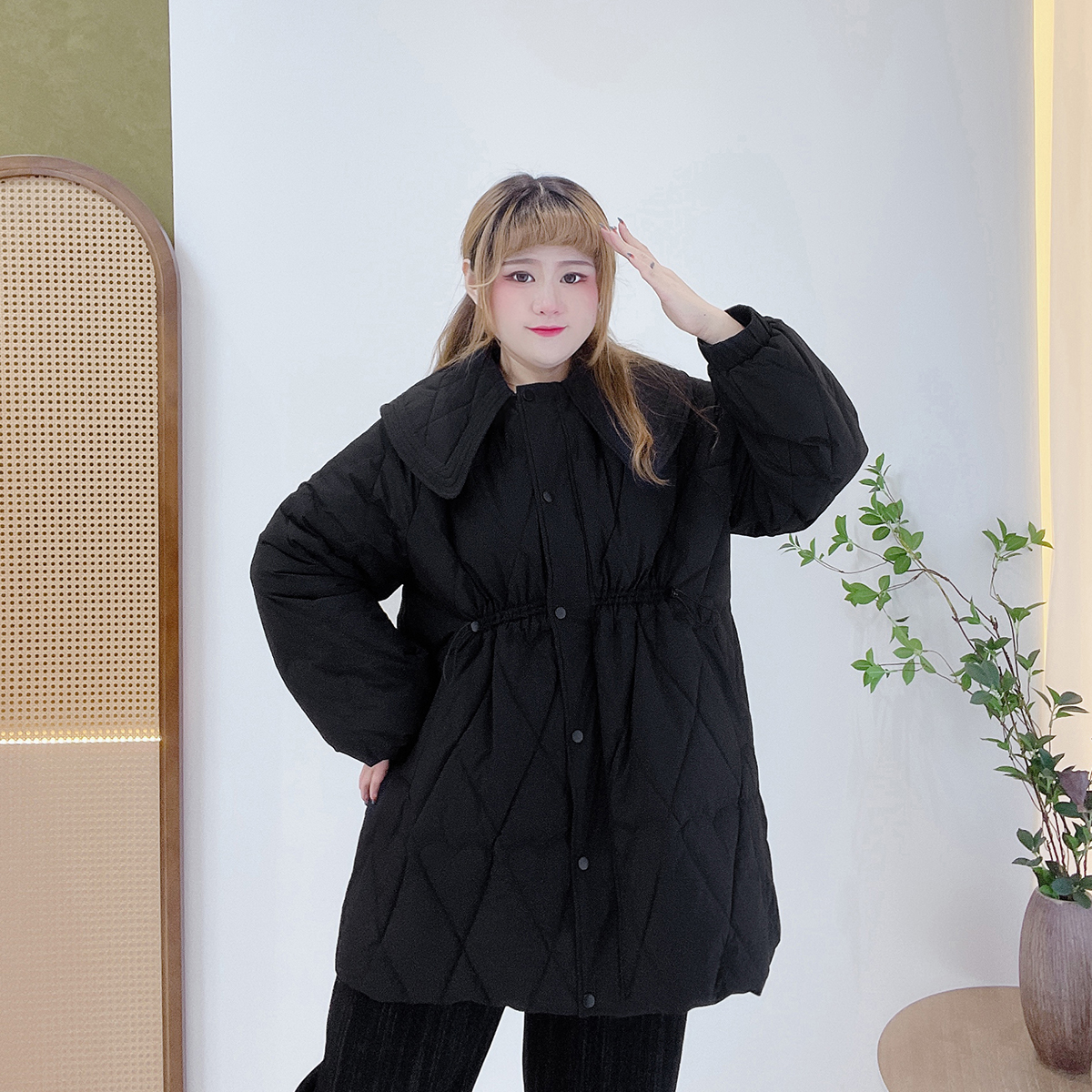 胖莹莹大码女装胖mm冬东北加厚外套甜美娃娃领收腰显瘦菱格羽绒服