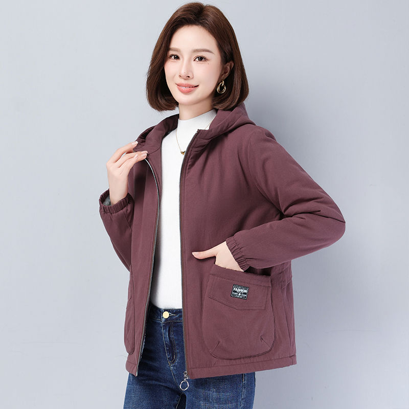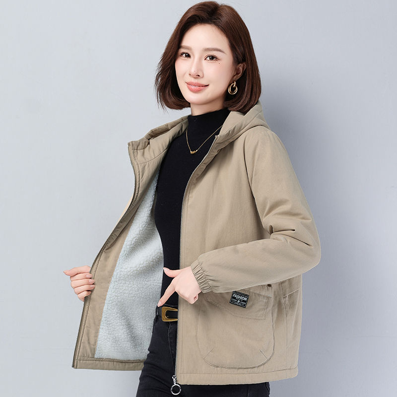 妈妈冬装加绒外套2025新款中老年女秋冬休闲保暖连帽棉服加厚夹克