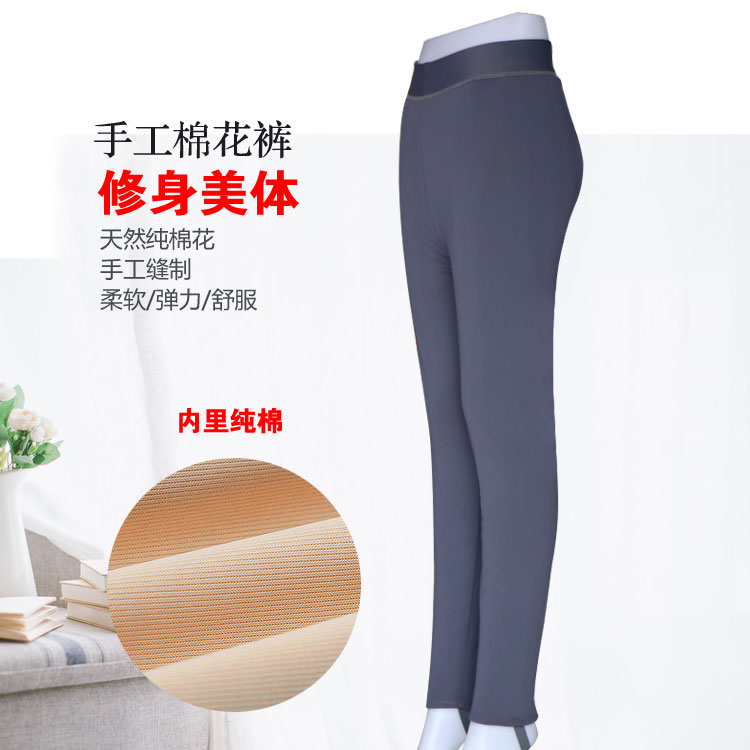 新款手工棉花裤女高腰显瘦打底裤踩脚保暖裤黑色秋冬小脚棉裤外穿