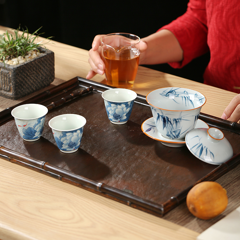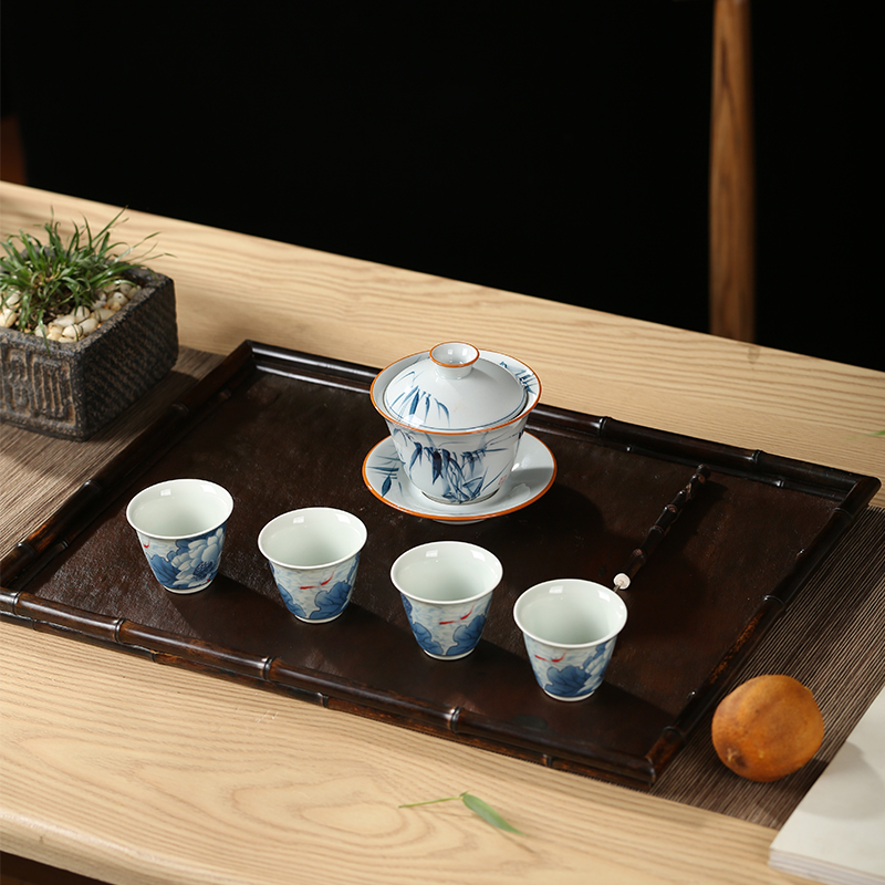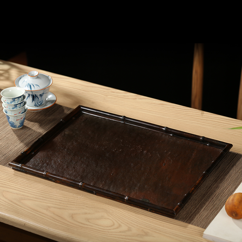 复古紫竹岩石竹制奉茶盘干泡茶盘茶具收纳托盘杯垫茶席长方形大号