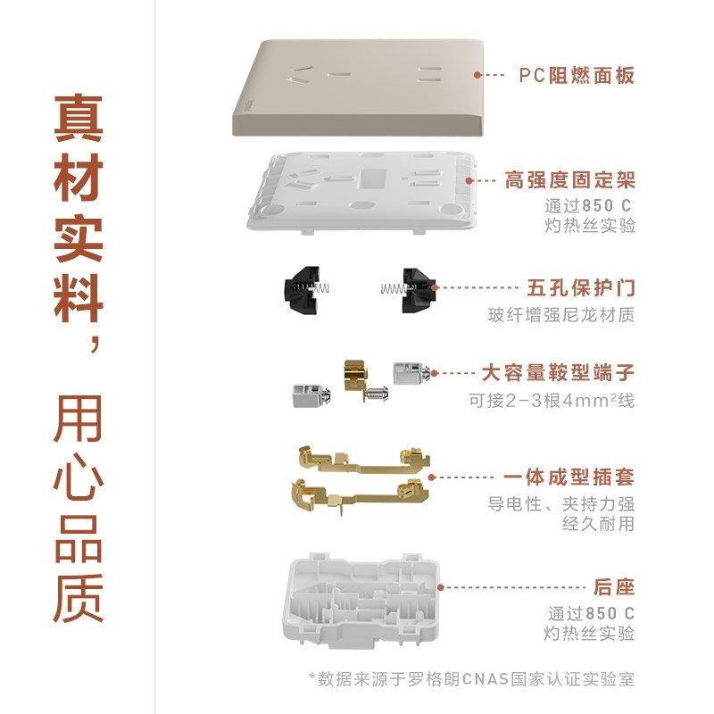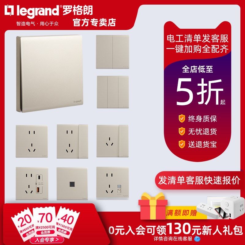 罗格朗简悦金色开关插座面板USB多孔五孔开8型暗装1空调插座