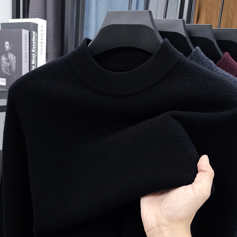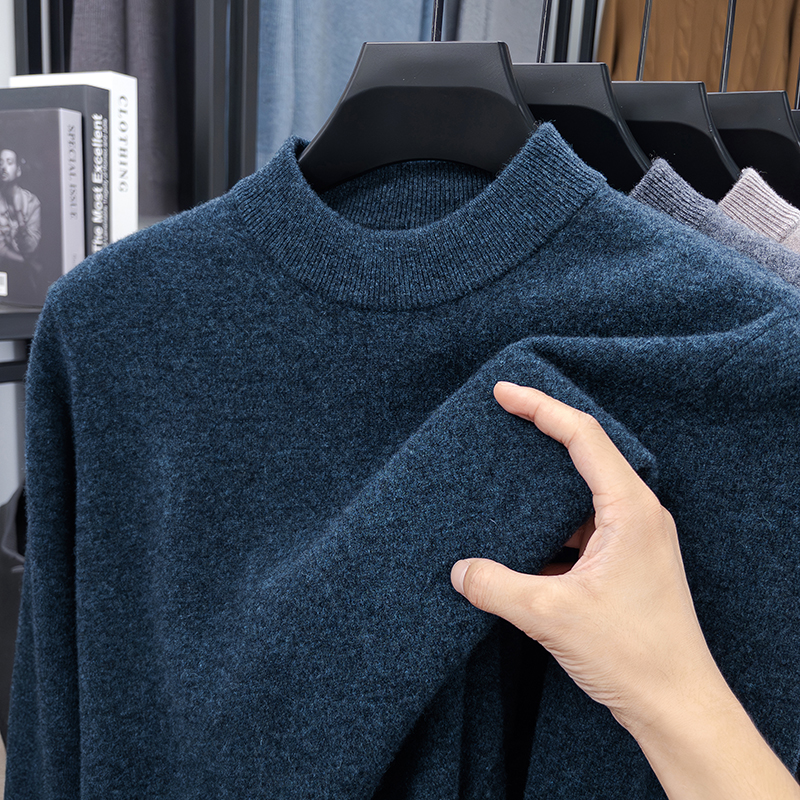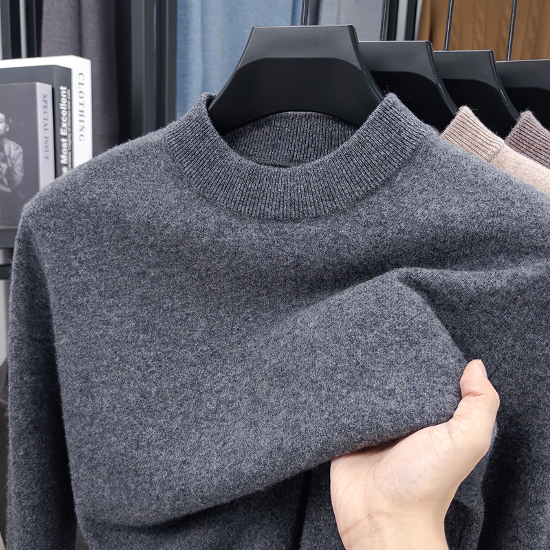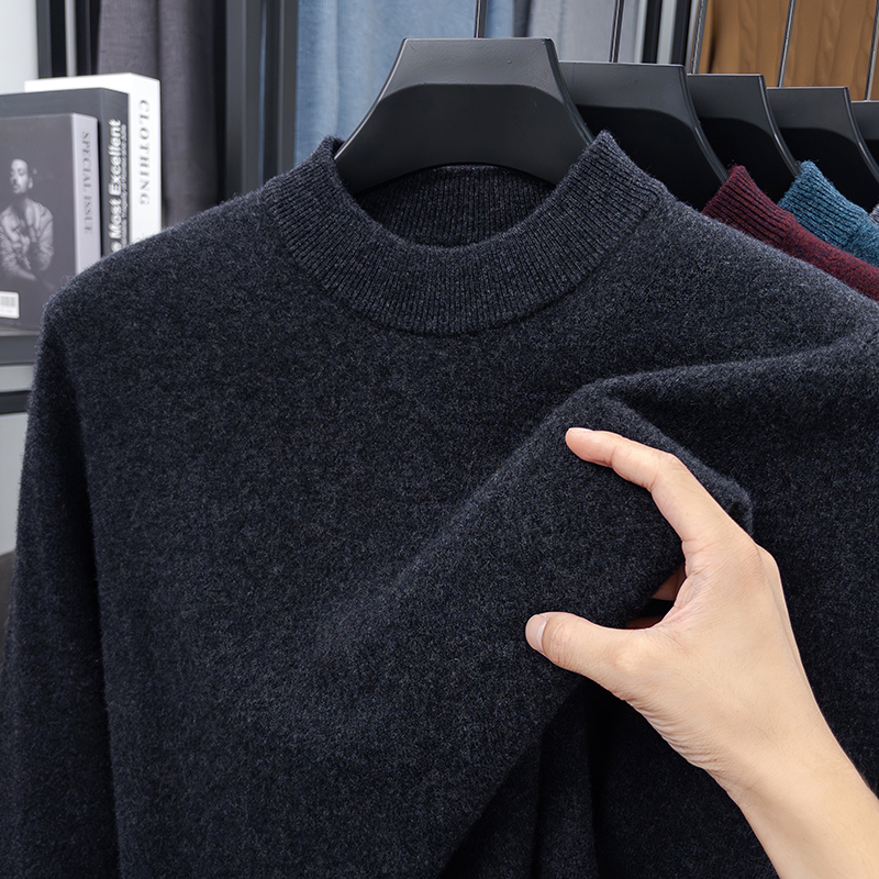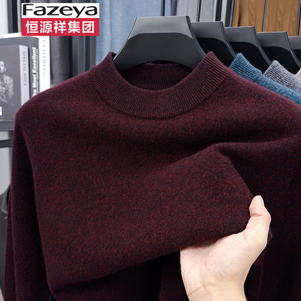 恒源祥彩羊圆领纯羊毛衫男冬季商务休闲加厚保暖中年人爸爸装毛衣
