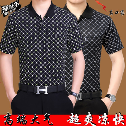 夏季中年男士短袖T恤中老年衣服爸爸装口袋新款T恤大码上衣POLO衫
