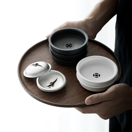 草木祠 铁艺手工建水盖茶叶罐盖锡制仙鹤盖茶洗盖香炉盖创意杯盖