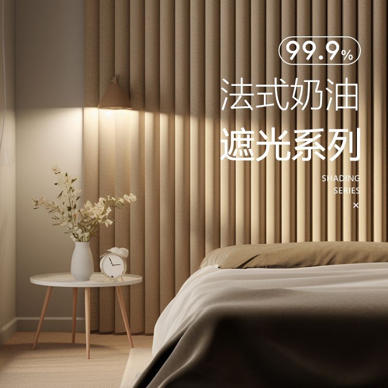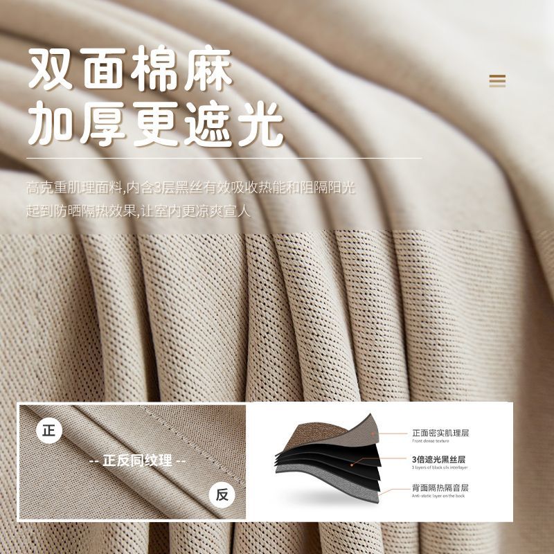 加厚遮光窗帘卧室客厅2023新款阳台飘窗隔热防晒隔音遮阳布料米色